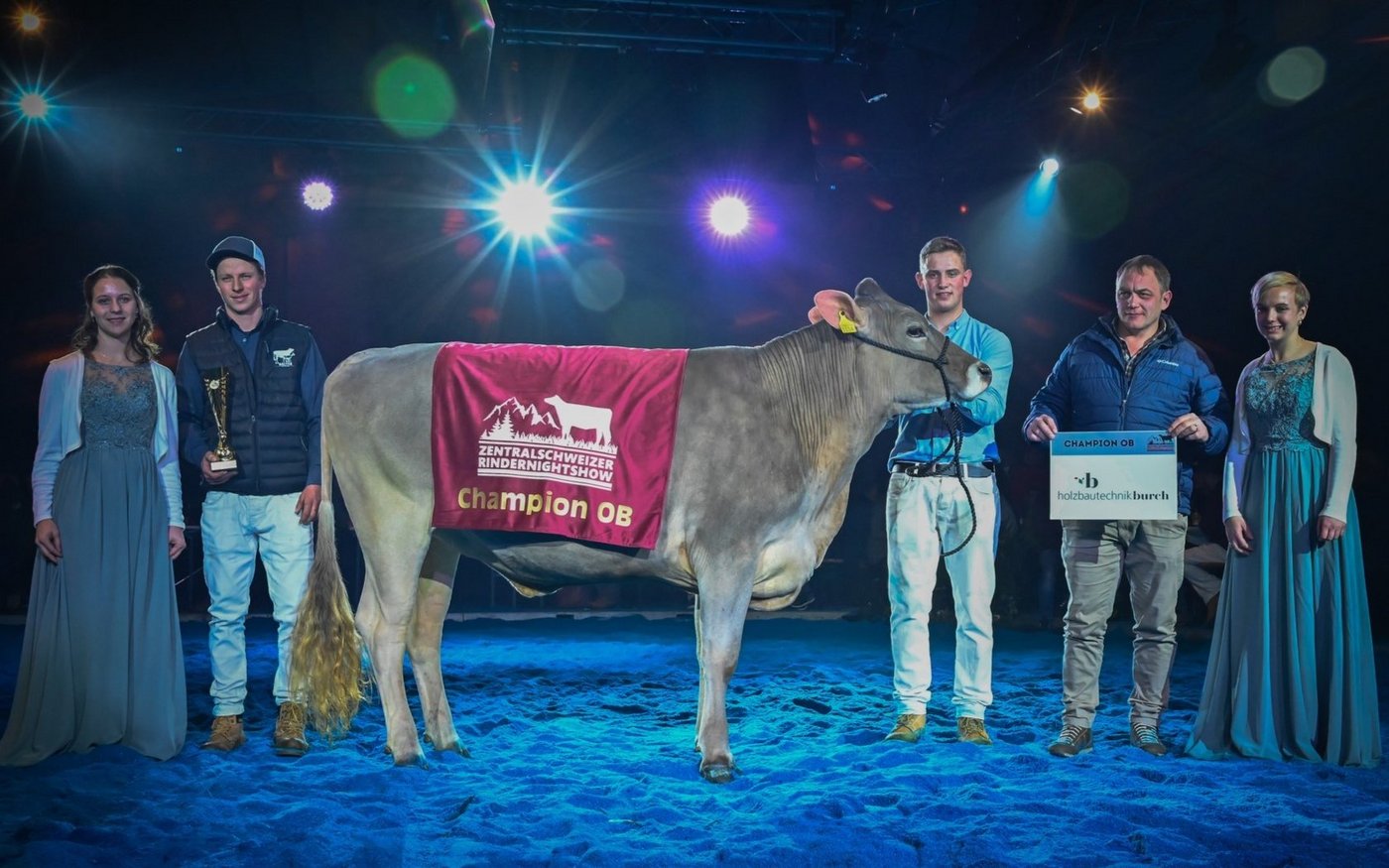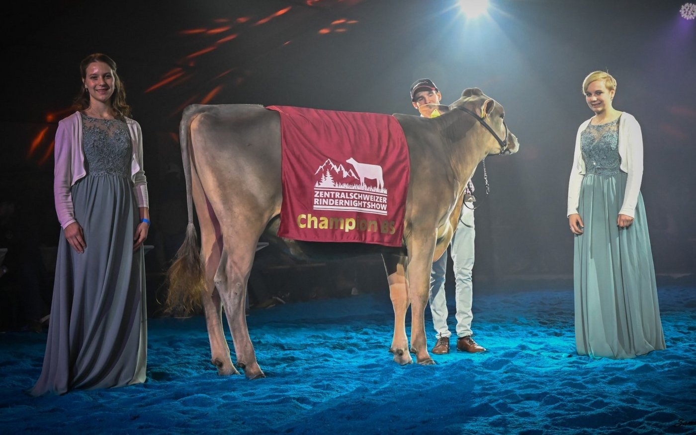 Kurz vor dem Jahresabschluss fand die Zentralschweizer Rindernightshow statt. Nach einem Unterbruch von sechs Jahren organisierten die Ob- und Nidwaldner Jungzüchter die Rinderausstellung auf dem Areal Chilcherli beim Flugplatz Alpnach. Das OK unter der Leitung von Präsident Fabian Hurschler durfte eine grosse Zahl an Besuchern und Zuchtinteressierten aus dem ganzen Braunviehgebiet begrüssen. Nicht nur die Zuschauer hatten teils lange Anfahrtswege, auch einzelne Ausstellungstiere kamen von weit her. So zum Beispiel Bärtsch’s BS Huge Sg Ulessa von Flurin Bärtsch aus Furna GR, welche nach ihrer Ehrenerwähnung an der Junior Expo Aargau vor gut sechs Wochen nun auch in Alpnach gefiel. Ulessa überzeugte einmal mehr und gewann ihre starke Abteilung vor Studefuchs Sinatra Sangria von Simon Gwerder, die Vize Miss der Schwyzer Junior Show.