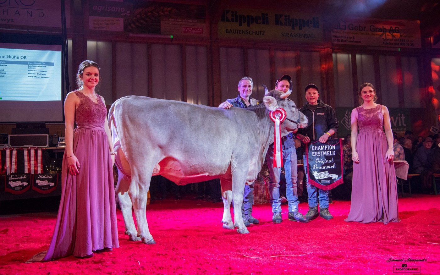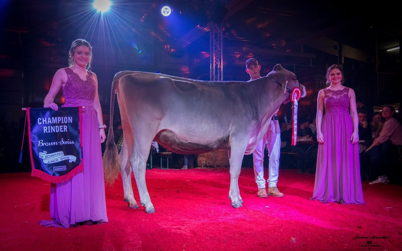 Bei den Brown Swiss Rindern holten die Muotathaler Jungzüchter einen Doppelsieg. Fabian Betschart stellte mit Gislerwaid Calvin Salvina die Champion, Simon Gwerder mit Studefuchs Sinatra Sangria die Vize. Janick von Rickenbach, Steinerberg komplettierte mit Pete Philippa das Podest. Auch bei den Holstein-Rindern präsentierte ein Muotathaler Jungzüchter das schönste Tier. Claudio Föhn holte mit der imposanten vomWeidhof Bad Dina den Sieg. Dina ist keine Unbekannte, so wurde sie Ende November an der 8. Ostschweizer Rindernightshow bereits Supreme-Champion über alle Rassen. Auch zur Vize Champion wurde ein Tier mit dem Präfix vomWeidhof gekürt: Chief Halleluja von Angela Steiner, der Präsidentin der Schwyzer Jungzüchter, gefiel dem Experten Dani Gisler. Honorable Mention wurde wie schon an der letzten Junexba in Mümliswil die elegante AL.Swiss Chief Dream-Love von Alain Lüthi, Pfäffikon.