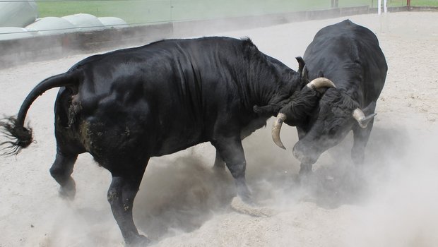Im Ring in Aproz VS werden sich ungefähr 300 Kühe mit den Hörnern messen. Rund 500 Freiwillige sind für die Durchführung der Kuhkämpfe im Einsatz. Dem Endkampf wohnen in der Regel um die 10'000 Zuschauerinnen und Zuschauer bei.