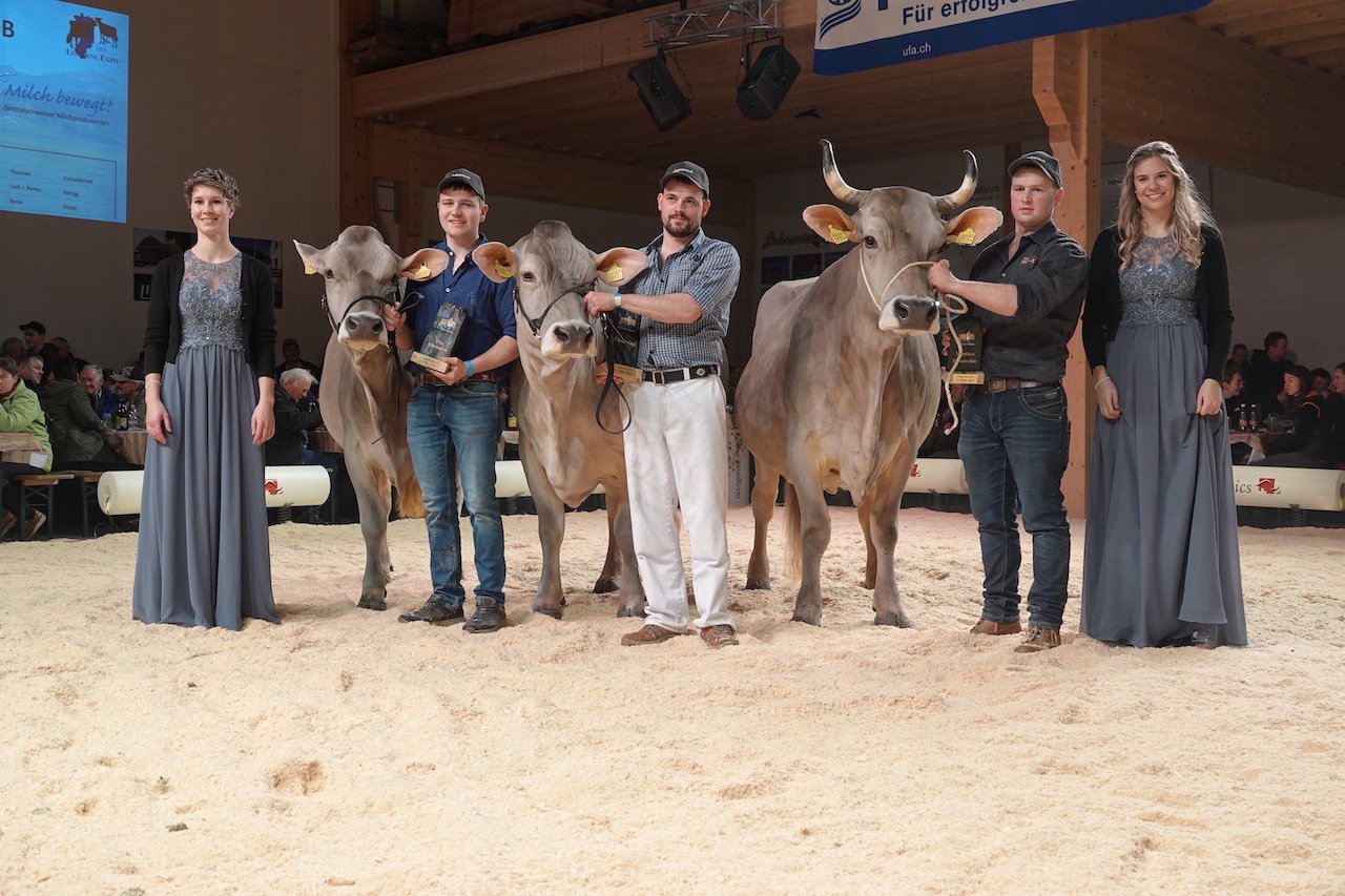 Es sei immer ein wenig schwierig, wenn es sich nicht um eine nationale Schau handle. Trotzdem wagte er die These, dass die Siegerkuh aus Marbach LU aktuell wohl die Schönste im Land sei. Bei der Grand-Champion-Wahl ging der Miss-Titel also an Heinen’s Superstar Yasmin. Auch die fünftlaktierende Vize Franzen BS Salomon Sina steht im Stall von Franz und Pascal Felder. Der feinere Knochenbau und das Fundament sowie die Zitzen sorgten für Stricker für den feinen Unterschied bei der Champion-Wahl. Auch noch aufs Podest schaffte es Südel’s BS Salomon Saphira von Roland Lustenberger und Florian Portmann aus Escholzmatt LU.