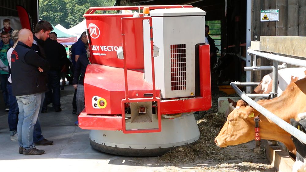 Bei ihm läuft alles vollautomatisch ab. Er holt die Komponenten, mischt, fährt in den Stall, dosiert aus, schiebt regelmässig nach und misst dabei, ob noch genügend Futter vorhanden ist. Das ist der Lely Vector, ein schienenlos geführter Fütterungsroboter. Bei seinen Fahrten in die Futterküche und zurück in die Ställe wird er mittels Sensoren, die sich im Boden befinden, geleitet.