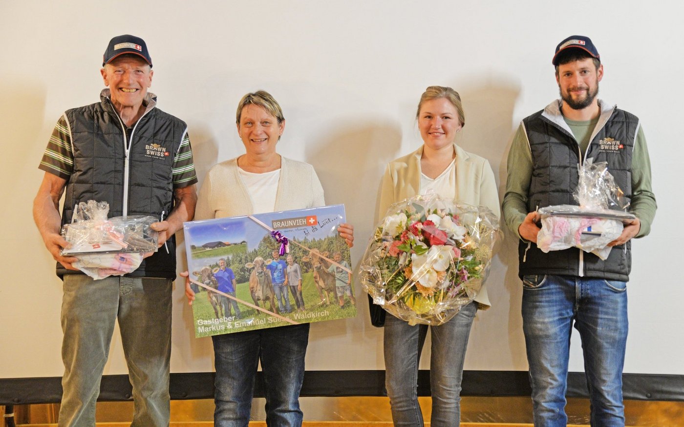 «Braunvieh bi de Lüüt» war 24. November 2023 bei der Familie Süess in Waldkirch zu Gast. Markus und Monika führen mit Sohn Emanuel und dessen Frau Daniela eine Generationengemeinschaft. Auf den 1. Januar werden Emanuel und Daniela den Betrieb ganz übernehmen. Emanuel schätzt die Braune Kuh aufgrund ihres Charakters: «Sie ist umgänglich und robust, hat einen idealen Klauensatz und eine gute Leistungsbereitschaft.» [RE…
