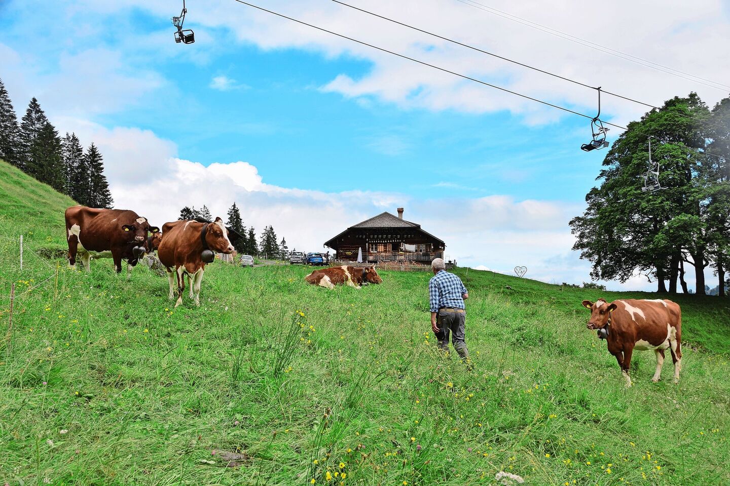 Der Nebel hängt an diesem Samstagmorgen noch tief und die Sonne hat noch Mühe, die Oberhand auf der Alp Egg zu gewinnen. Wie überall hat auch hier hoch über dem Kiental im Berner Oberland der Alpsommer verregnet begonnen. «Wir dürfen uns nicht beklagen, Futter hat es im Überfluss und Unwetter hatten wir auch noch keines», sagen Heidi und Fritz Zurbrügg dankbar. [IMG 1] Ihre Mutschli sind beliebt Die Kühe grasen an…