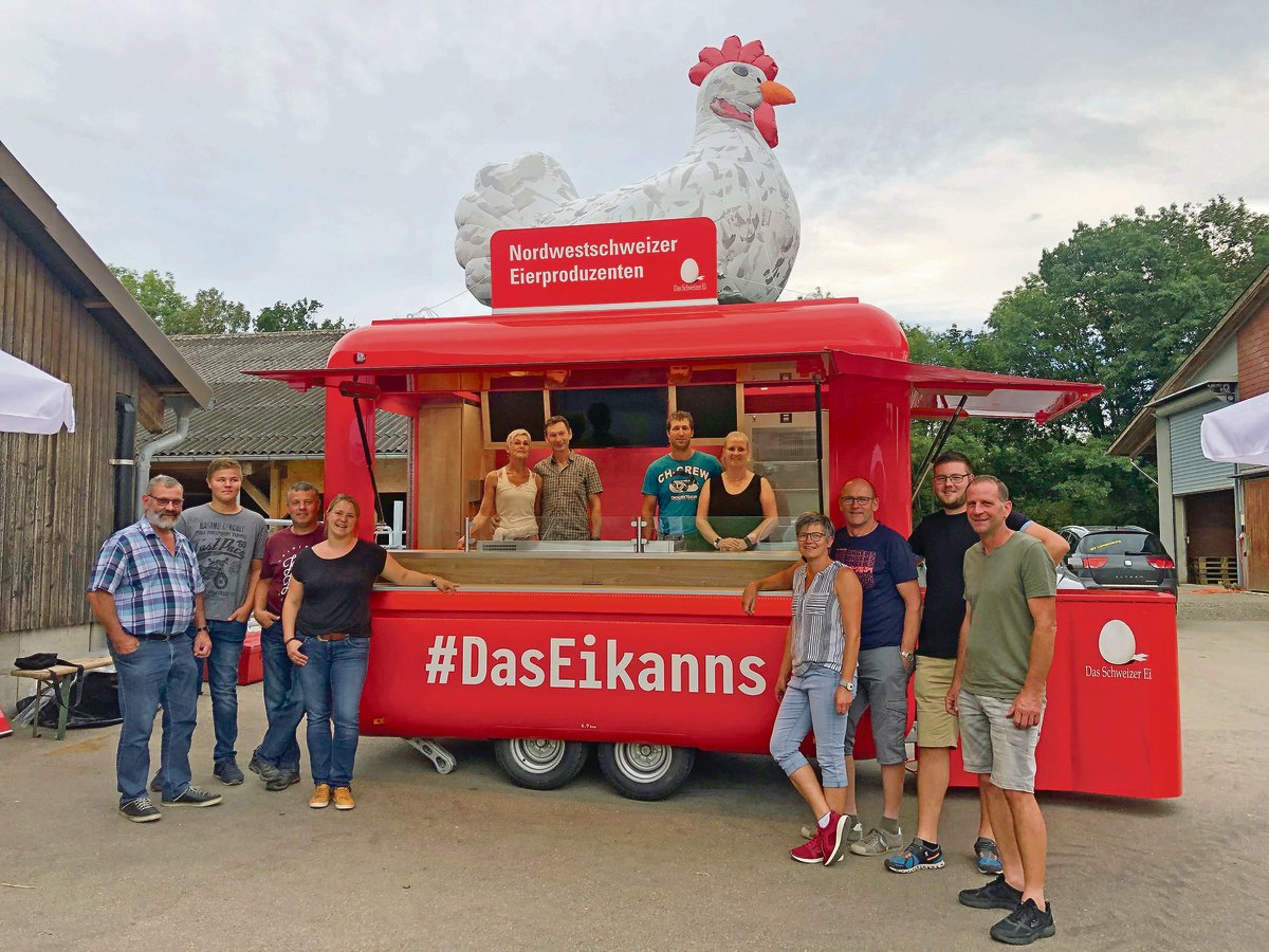 «Was ist denn das für ein knallrotes Mobil mit dem freundlichen Huhn auf dem Dach?», fragten die Leute gwundrig, die an den Gelterkinder Samstigmärt im Baselbiet kamen. Schon von Weitem begrüsste die hübsche Legehenne auf dessen Dach die Besucher. Eierproduzent Jörg Rieder klärte auf: «Mit diesem Gefährt wollen wir aufmerksam machen auf den «Verein Nordwestschweizer Eierproduzenten», der vor rund zehn Jahren von neun…