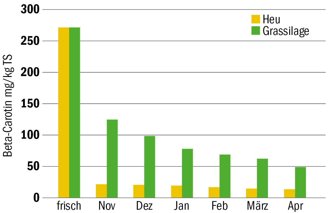In der Natur findet man in der Regel vier bis sechs Carotine, die im Körperstoffwechsel zu Vitamin A umgebaut werden können. Beta (ß)-Carotin kommt in den Pflanzen mengenmässig am häufigsten vor. Wogegen Vitamin A nur in tierischen Futtermitteln vorkommt. ß-Carotin hat, neben der Funktion als Vitaminvorstufe, auch eine eigenständige Wirkung im Körper. Es ist ein wichtiges Antioxidans und wirkt positiv auf…