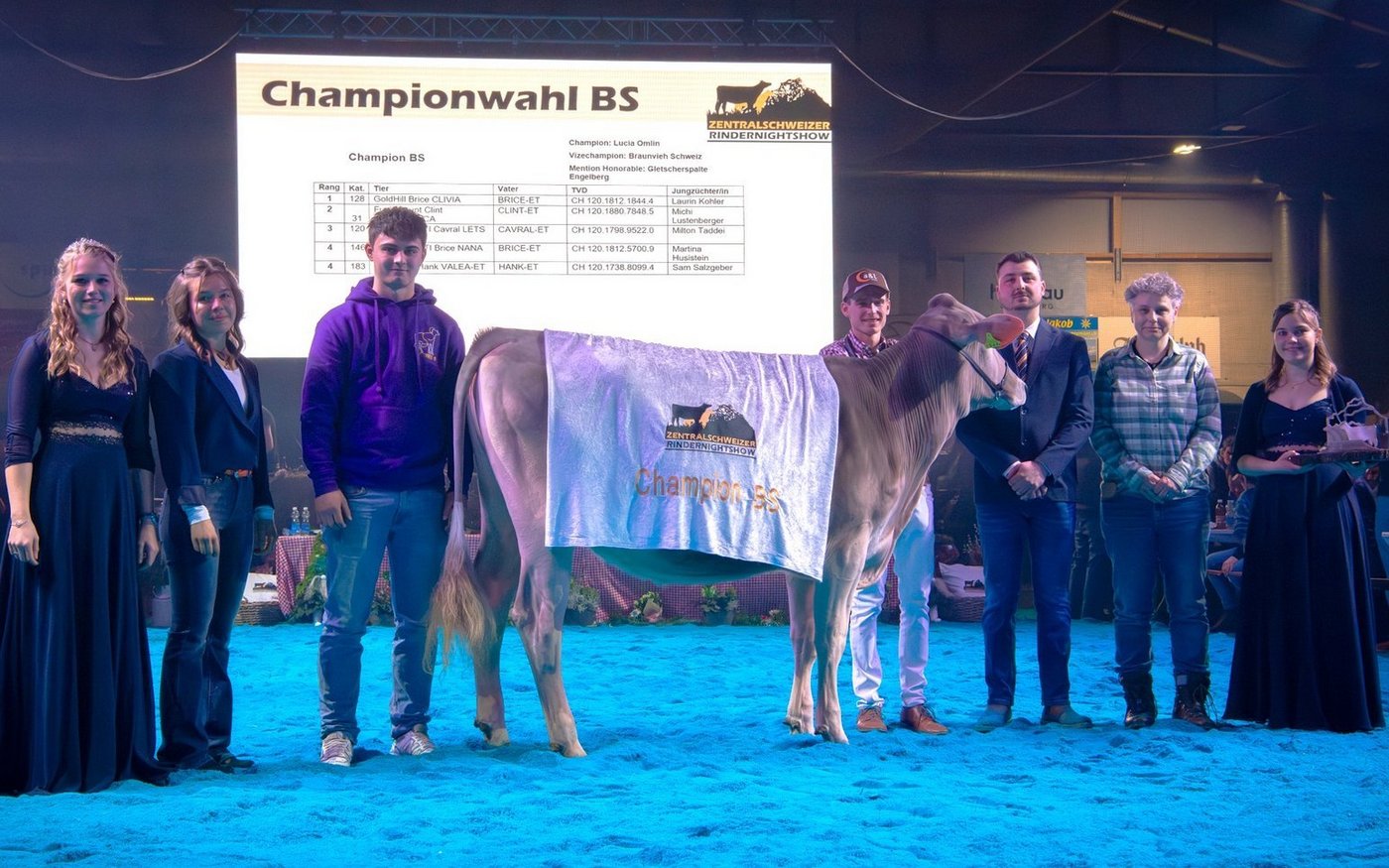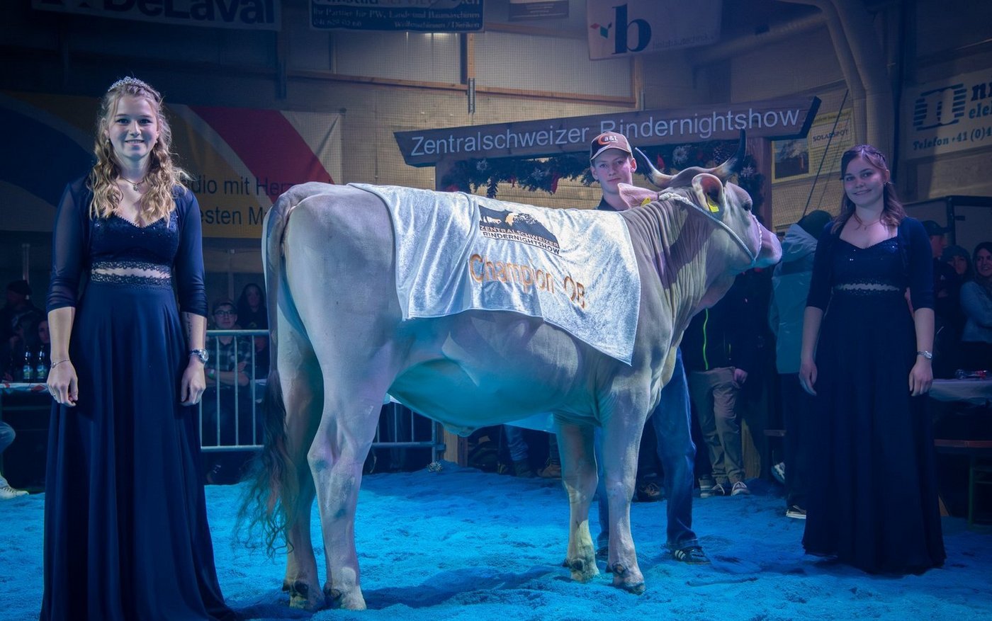 Zum vierten Mal fand die Zentralschweizer Rindernightshow statt. Nachdem die ersten drei Austragungen noch in Sarnen und in Alpnach stattfanden, lud das Organisationskomitee (OK) nach Engelberg ein. Dem Wohnort von OK-Präsident Fabian Hurschler. Für einmal wurden die Tiere nicht in einem Zelt, sondern in der Tiefgarage des Sporting Park aufgestallt. Vorgeführt wurden die Rinder dann darüber im Hockeystadion – das Eis war mit Platten abgedeckt.