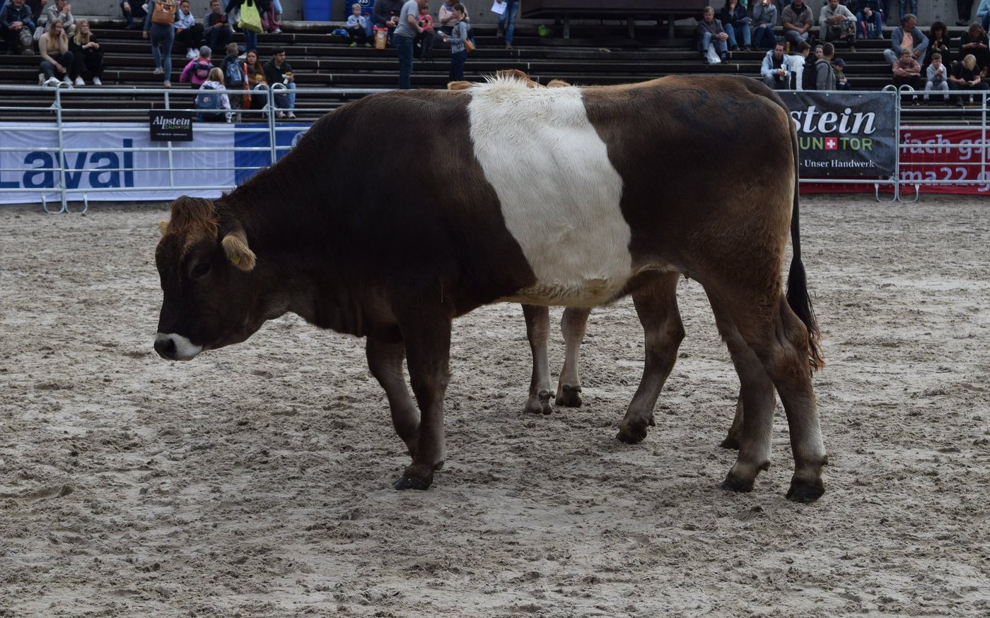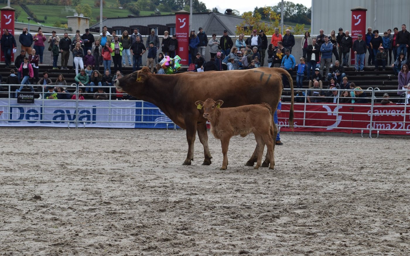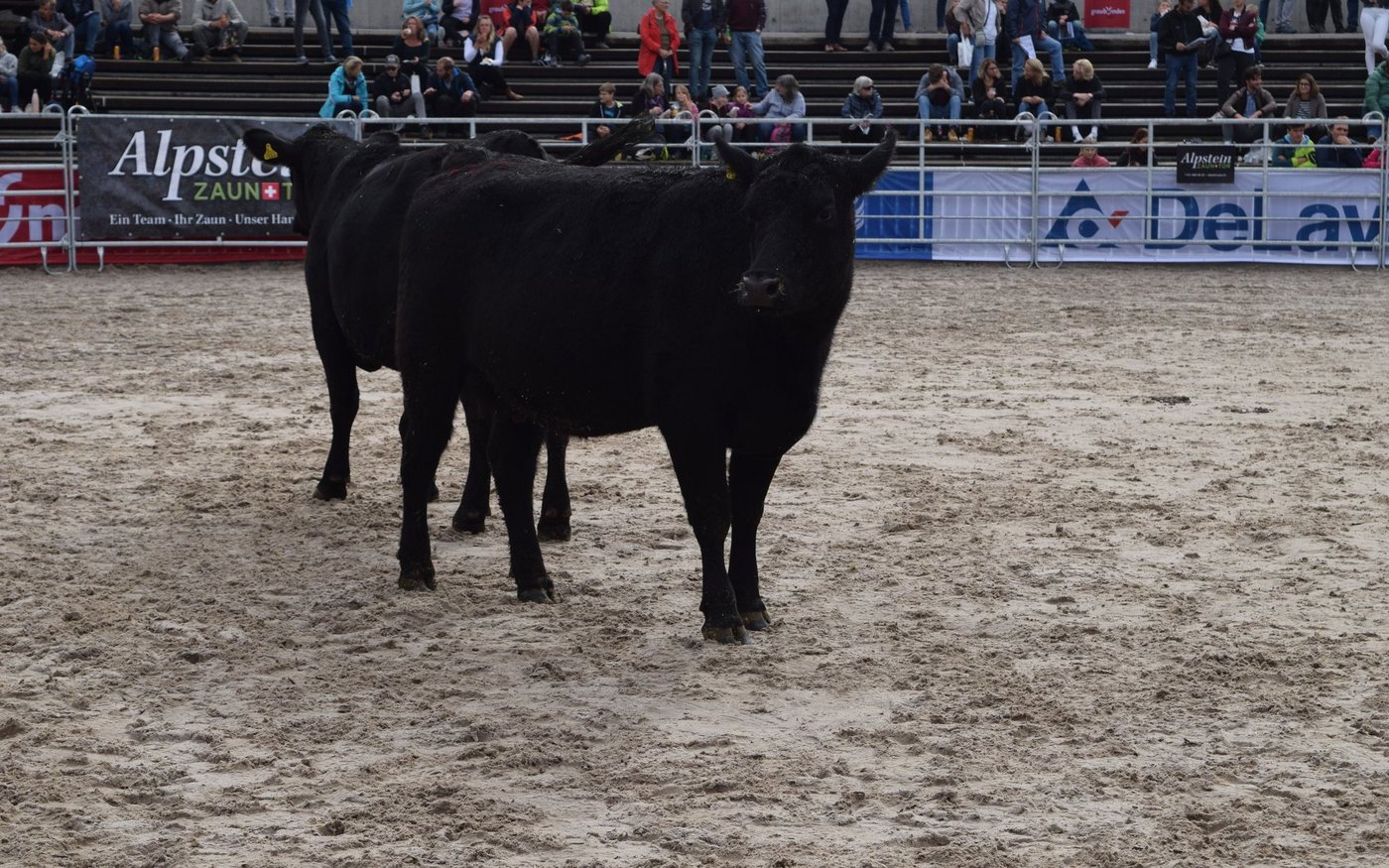 Als drittes Tier wurde OB-Kuh Azura mit ihrem Kalb in den Ring gebracht. Das Stierenkälbchen war etwas übermütig, rannte kreuz und quer durch den Ring und bahnte sich schliesslich einen Weg zwischen der Kamera und Pannels hindurch, wodurch das Stromkabel riss. «Das war’s dann mit der Live-Übertragung», kommentierte Jaquement trocken. Azura wurde nach kurzer Unterbrechung für 4'500 Franken versteigert und erzielte damit das Tageshöchstgebot. [IMG 7]