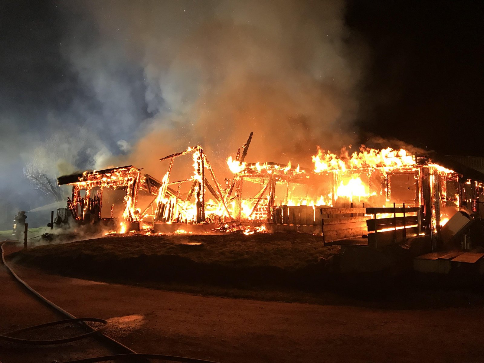 Die Feuerwehr war kurz nach fünf Uhr alarmiert worden. Der Stall an der Berghofstrasse stand da bereits in Flammen.