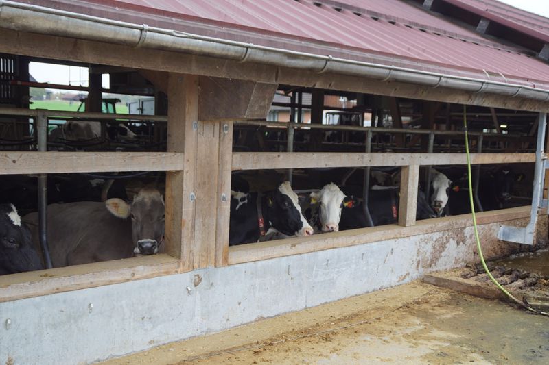 Ohne Kraftfutter seien so hohe Milchleistungen nicht möglich, aber ca. 8'000 kg Milch kämen aus dem Grundfutter, schätzt Koster, wobei der Silomais einen grossen Anteil einnehme. Pro Kuh braucht es dann noch etwa 1'800 kg Kraftfutter pro Jahr. Koster steht hinter der hohen Milchleistung seiner Kühe. «Es sind praktisch Spitzensportler», zieht er den Vergleich zum Menschen. Es komme einfach darauf an, dass sie entsprechend ihres genetischen Potentials gefüttert werden. Wenn sie dabei gesund bleiben, ist das in seinen Augen keine Überforderung der Tiere. Die hohe Leistung setzt aber auch voraus, dass man ihnen die besten Voraussetzungen im Stall gibt, bestes Futter, an das Tier angepasste Einrichtungen und beste Pflege. Alles muss stimmen. Die Tiere können sich am Melkroboter melken lassen, wenn der Druck im Euter gross wird.