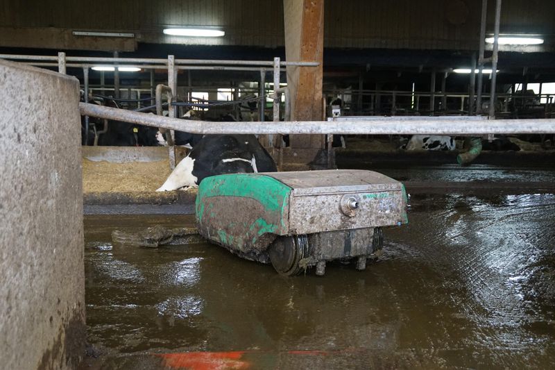 Ein Entmistungsroboter reinigt die Laufgänge.