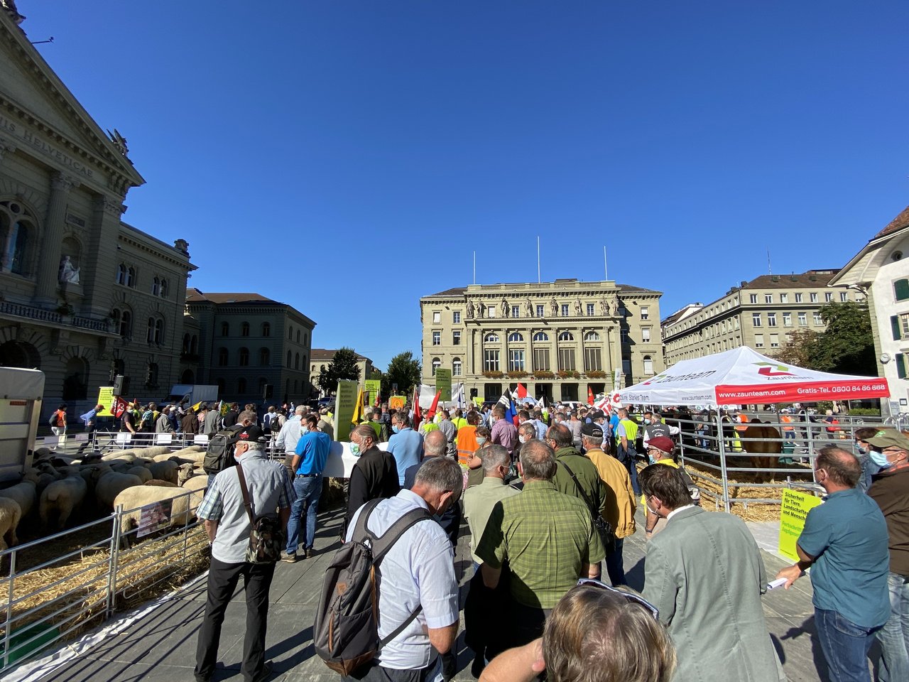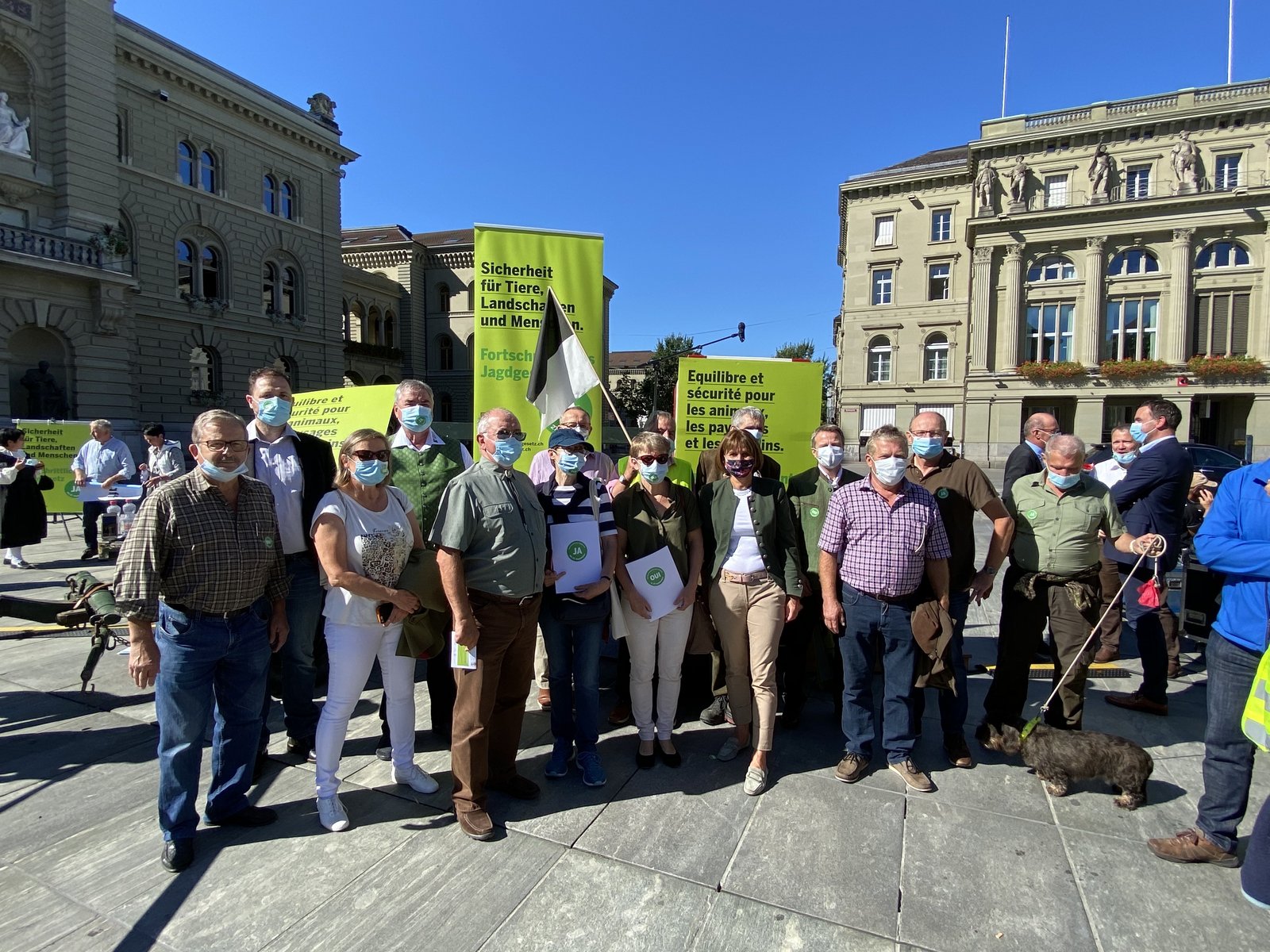 Das Wetter meinte es am vierten September gut mit den Organisatoren der Manifestation für ein Ja zum revidierten Jagdgesetz: Unter einem stahlblauen Himmel versammelten sich Älplerinnen und Älpler, Bauern und Bäuerinnen, Jäger und andere Befürworter der Abstimmungsvorlage auf dem Bundesplatz. Ziel des Komitees waren die Sensibilisierung und Mobilisierung des Stimmvolks.