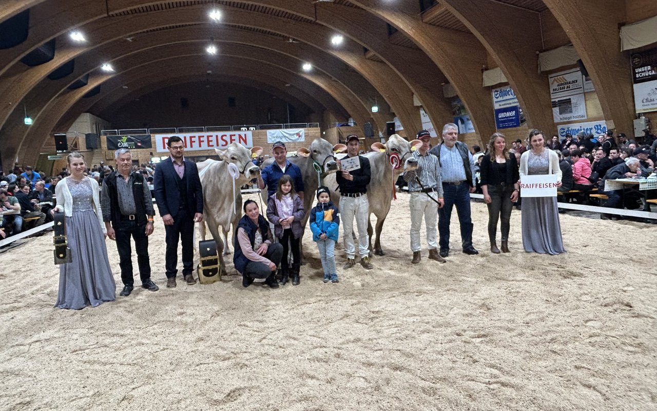 Die grosse Siegerin der 22. Spitzen-Braunvieh Show war Jamaica von Christian Schneider aus Schwendi. Die Holdrio Tochter in zweiter Laktation überzeugte insbesondere mit ihrer starken Euteraufhängung und ihrer Eleganz. «Ein athletisches Tier mit grosser Flankentiefe, schönem Fundament und einem wunderbaren Euter», brachte es Richter Andreas Valär aus Jenaz auf den Punkt. Ueli Tischhauser aus Oberschan eroberte mit seiner drittlaktierenden Canyon Urinka den Vize-Championtitel. Auf den dritten Rang stellte Richter Andreas Valär die Grischa Star Tochter Anschi von Andreas Wittenwiler aus Nesslau. Die letztjährige Champion Nischa kam dieses Mal nicht in die vorderen Ränge. [IMG 2] Die Championkuh Jamaica schaffte es auch beim Schöneuter-Wettbewerb der jüngeren Kühe auf das Podest und wurde Dritten. Sie musste der erstrangierten Phil Brina von Ueli Tischhauser und der Zweiten O Malley Emerita von Christian Beeler-Kurath aus Flumserberg den Vortritt lassen. Den Schöneuter-Wettbewerb bei den älteren Kühe gewann Lennox Wonja von Edwin Schirmer aus Goldingen. Die Vize Champion Urinka von Ueli Tischhauser schaffte es auch in der Schöneuterwahl auf den zweiten Platz, erneut gefolgt von Anschi von Andreas Wittenwiler.