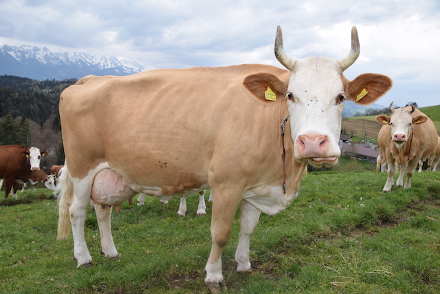 Heute, an diesem schönen Frühlingstag, geniessen die Kühe das frische Gras auf der Weide. Im Osten sieht man den Brienzer Rothorngrat, im Süden den Niesen, weiter hinten Eiger, Mönch, Jungfrau und im Westen das Gurnigelgebiet. Mittendrin die Kuhherde von Grafs. Alle Simmentaler- und auch ein Teil der Swiss-Fleckvieh-Kühe tragen Hörner. «Für uns stimmt es so», sagt Daniel Graf. «Eine Simmentalerkuh ohne Hörner, nein, das kann ich mir nicht vorstellen», sagt seine Frau Adelheid bestimmt. Nicht nur der schöne Kopfschmuck sticht einem ins Auge, auch die massigen Kühe mit ihren schönen Eutern sind ein wahrer Blickfang. Obwohl Grafs erst 1997 in einer Viehzuchtgenossenschaft sind, sind ihre Zuchterfolge doch beachtlich. «Pickel, Incas, Sten oder die Anjou-Linie haben bei uns sehr gut funktioniert», hält der Züchter fest.