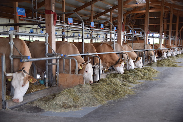 Bei den Simmentalern waren es vor allem die Natursprungstiere Runic, Ben, Agakan, Annouko oder Risto, welche ihre Spuren hinterlassen haben. Heute werden vor allem die Stiere Santo, Pickel (noch immer), Gulliver, Odel, Unetto, Unikat, Brisago, Corvi oder der junge Natursprungstier Amur eingesetzt. Vor allem ihre 98-pünktige und 100 000er Kuh Vulkan Annouk habe ihrer Nachzucht den Stempel aufgedrückt. «Noch heute stammen viele Kühe aus dieser Linie», sagt Adelheid Graf, die in jüngeren Jahren auch als Richterin tätig war. Aber auch die ehemalige KB-Stierenmutter Alik Rehli (Lebensleistung 132 200 kg), prägte die Zucht massgeblich mit. Stolz sei man auch auf den Miss-Titel, welches ihr Simmentalerrind Ben Ilania an der Junior Expo in Thun 2018 über alle Rassen gewinnen konnte. «Da wir alle weiblichen Kälber aufziehen, kalben bei uns jährlich gegen 30 Rinder ab», hält Daniel Graf fest.