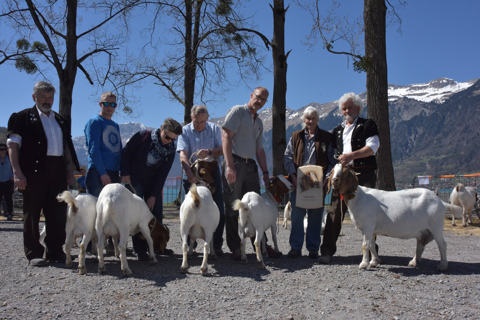 Den Leitgedanken der Experten folgend wurde Nagib, ein gut zweijähriger, letztes Jahr aus den Niederlanden importierter Burenbock von Andrea Kiser und René Odermatt aus Sarnen OW zum Mister Swiss-Boer 2019 gekürt. Seine vollen Gigots und sein Alter gaben den Ausschlag zu seinen Gunsten gegenüber dem Mister Swiss-Boer 2018 Huray. Raguna, eine sechsjährige Ziege ebenfalls aus dem Stall von Kiser/Odermatt wurde Miss Swiss-Boer 2019. Sie kam mit der Maximalpunktzahl von 66666 auf den Schauplatz und überzeugte die Experten mit ihrer Flankentiefe, ihrer Länge sowie ihrer gleichmässigen und tollen Bemuskelung.