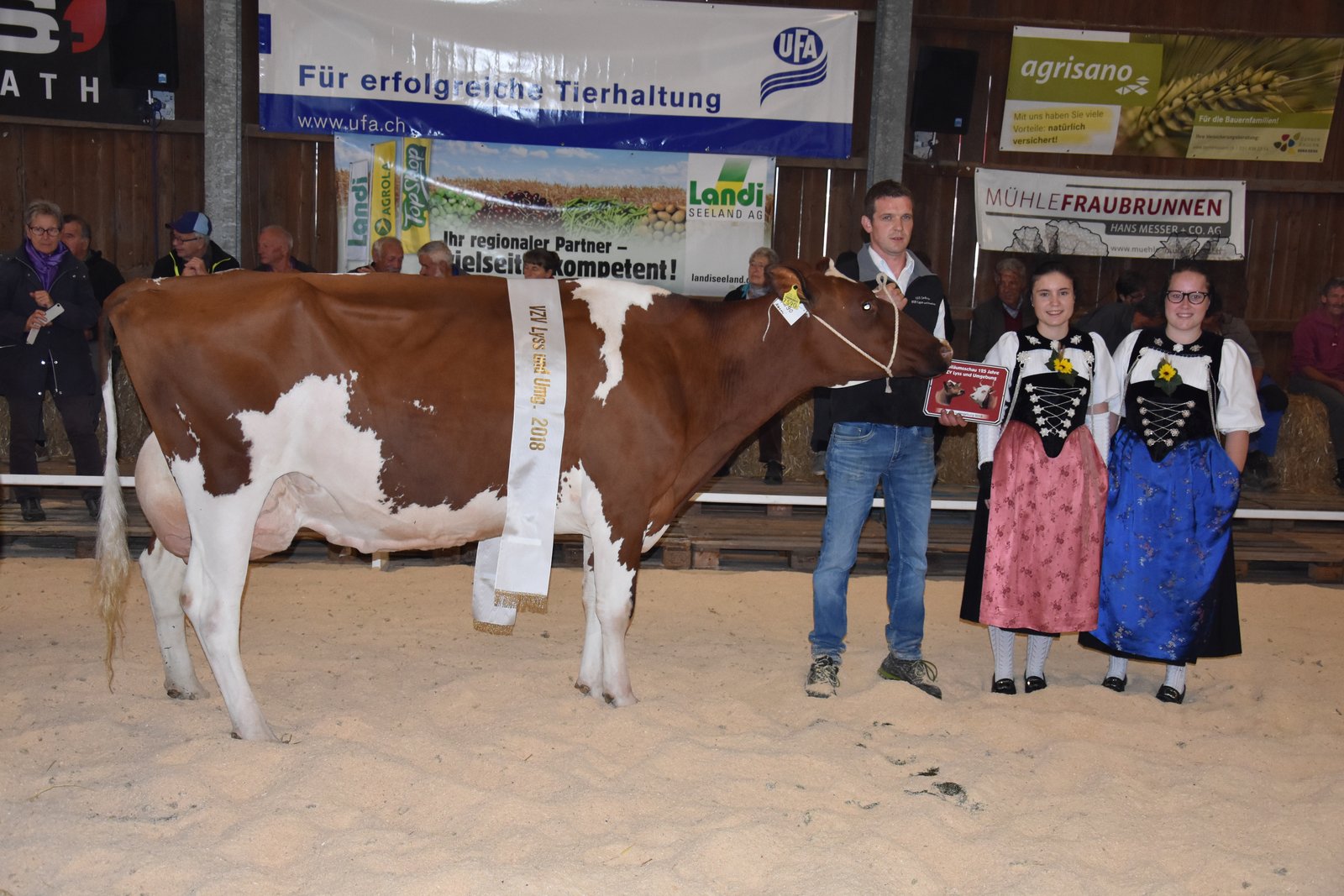 Das schöne Herbstwetter zog hunderte Besucherinnen und Besucher an die 125-Jahr-Jubiläumsfeier des Viehzuchtvereins Lyss nach Worben BE. 200 Kühen in acht Kategorien kämpften um Punkte, Ruhm und Ehre. Zur Tagesmiss kürten die Experten die Siegerkuh der Klasse 7, Leonard Naomi (55 55 97) von Reto und Markus von Dach, Werdthof BE.