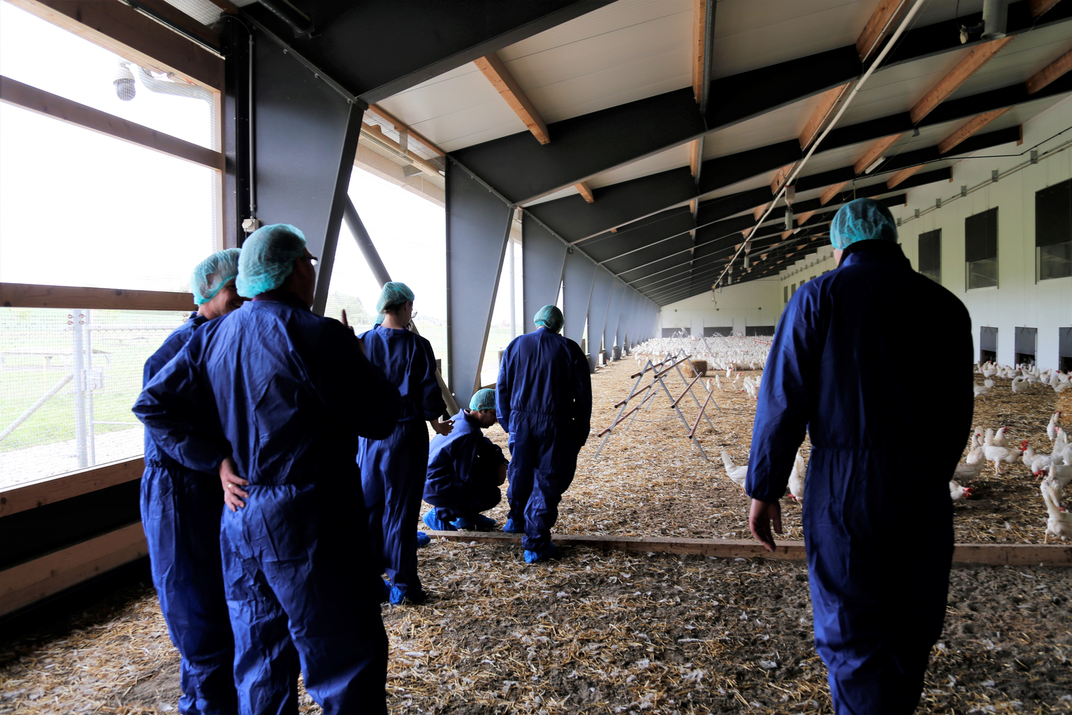 Das zweiwöchige Programm mit 10 Teilnehmern startete Ende April in Holland. Nach sechs Tagen in Holland und Belgien reiste die Gruppe nach Schweden, bevor sie in die Schweiz kamen. Anschliessend an die Besichtigung der Stiftung zur Förderung der Schweizer Geflügelproduktion Aviforum wurden die Teilnehmer auf dem Hof Gallipool im freiburgischen Frasses begrüsst. Betriebsleiter Daniel Würgler hält im 2015 gebauten Stall zusammen mit zwei Kollegen rund 18'000 Legehennen. Im Innern können sich die Hennen auf einem dreistöckigen Balkon-System frei bewegen, ihre Eier legen sie auf ein Förderband. Zusätzlich verfügen sie über 4,5 Hektar Grünfläche mit kleinen Schutzhäuschen. Ausserdem haben sie täglich Zugang zum Wintergarten. Dieser hat ein Sand-Abteil fürs Sandbad sowie Strohballen, die die Hennen zur Bewegung animieren. Auf Knopfdruck regnet es im Wintergarten Weizenkörner - eine Beschäftigung die dem natürlichen Verhalten des Huhns entgegenkommt.