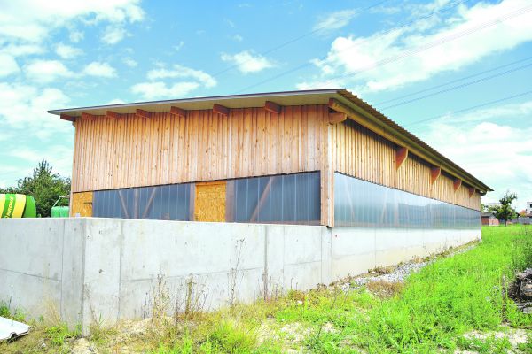 Mit seiner einfachen Scheune erfüllt er diese Voraussetzung. Sie ist zehn Meter breit und 21 Meter lang. Gebaut hat er fast alles alleine, mit Unterstützung von Zeichnern und Handwerkern in den entscheidenden Phasen. Derzeit ist er mit dem Innenausbau für den Mastbereich beschäftigt. Der hohe Anteil Eigenleistung hat sich buchstäblich ausbezahlt. Gosteli beziffert die Gesamtkosten auf 200 00 Franken ohne die eigenen Stunden.