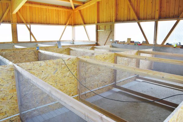 Allzu lange darf sich Gosteli nicht mehr Zeit nehmen mit dem Innenausbau, den er kostengünstig mit OSB-Platten ausführt. Denn der Countdown läuft. Vergangenes Wochenende hat er im bereits fertiggestellten Zuchtteil die ersten Muttertiere mit den Böcken zusammengeführt.