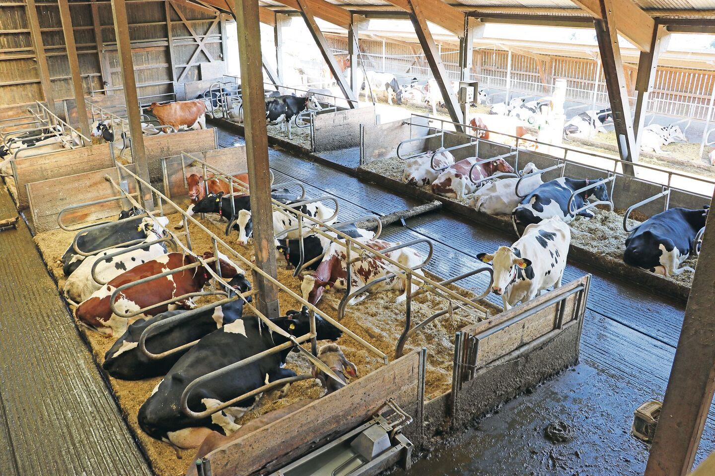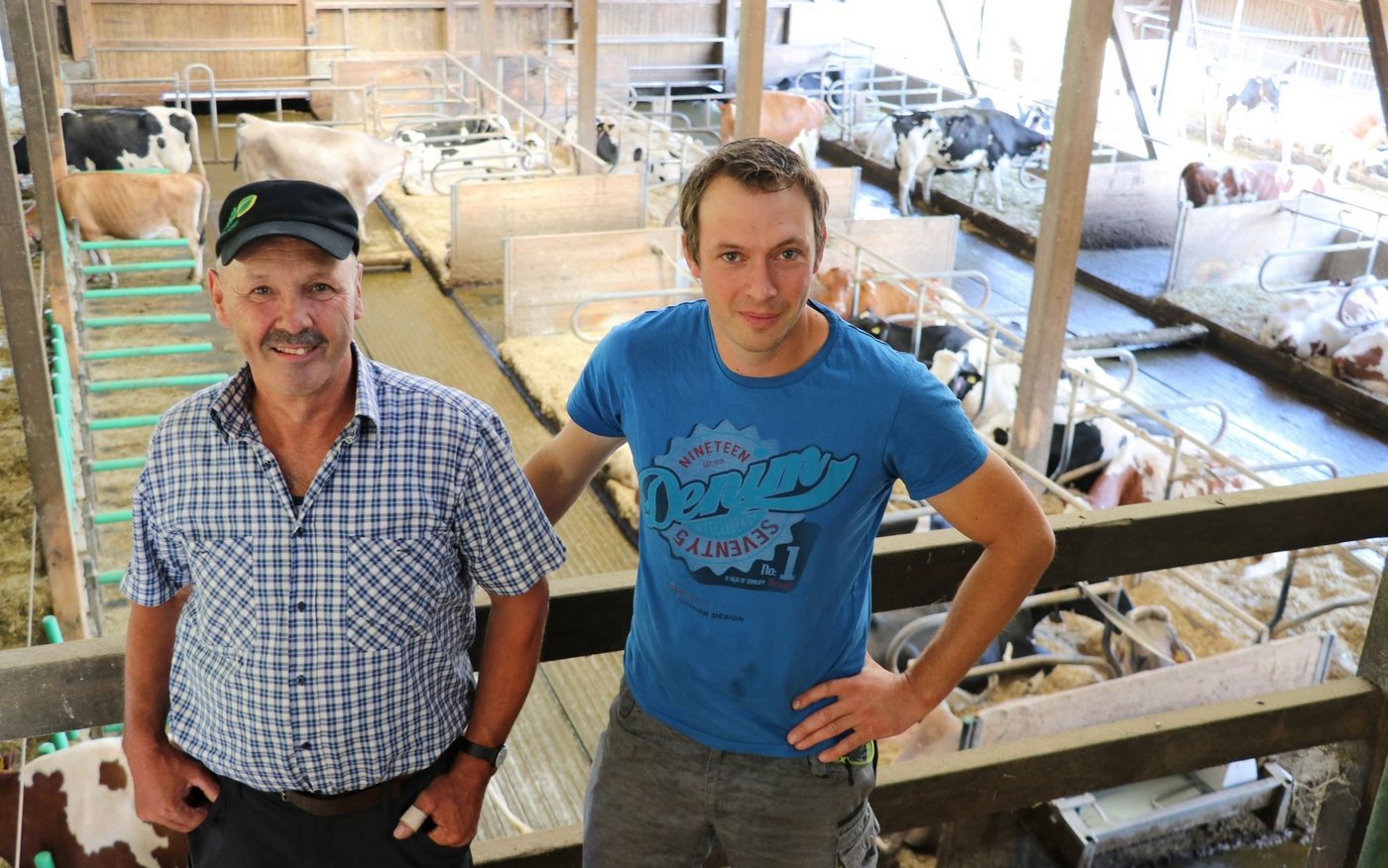 Ein paar Kühe rupfen Gras auf der Weide, die meisten haben sich an diesem Sommermorgen schon zurück in den schattigen Stall verzogen. Dort liegen sie und käuen wieder, eine Kuh lässt sich im automatischen Melksystem (AMS) melken, die nächste steht hinten an. Fressen, ruhen, Milch produzieren, das werden die Kühe von Familie Lüscher aus Muhen auch in sieben Wochen – aber an einem anderen Ort. Zwanzig von ihnen gehen…