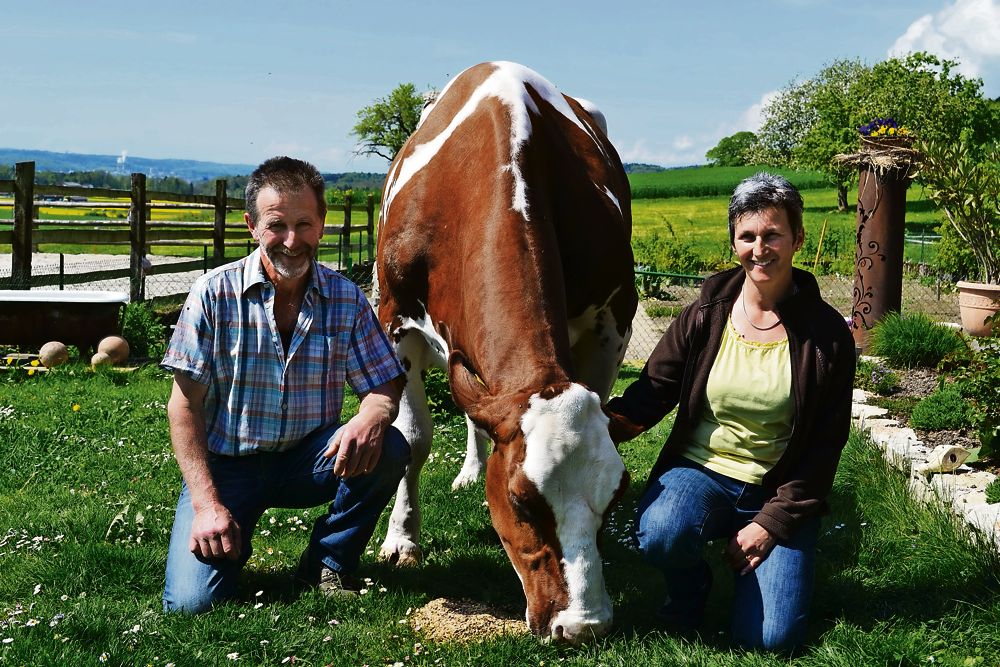 Auf grosse Fürsorge kann auch die 19-jährige Swiss-Fleckvieh-Kuh Lisa von Käthi und Hanspeter Schmitz aus Wiedlisbach BE zählen. Diese «alte Dame» hat bisher 170'674 kg Milch produziert und ist somit die noch lebende rote Kuh mit der höchsten Lebensleistung bei Swiss-