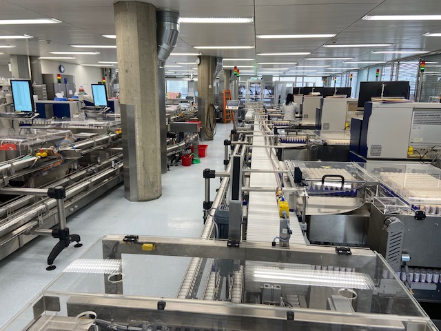 Anlässlich eines Medienfrühstücks hat Suisselab-Geschäftsführer Christian Beck am Freitag Einblick ins rundum erneuerte Labor geboten. Der Betrieb wird eingespielt und läuft wie am Schnürchen. Wenn sich, wie während unseres Besuchs auf einem der neuen Förderbänder ein Stau ergibt, ist sofort eine qualifizierte Schar von Mitarbeitenden vor Ort, um diesen zu beheben.