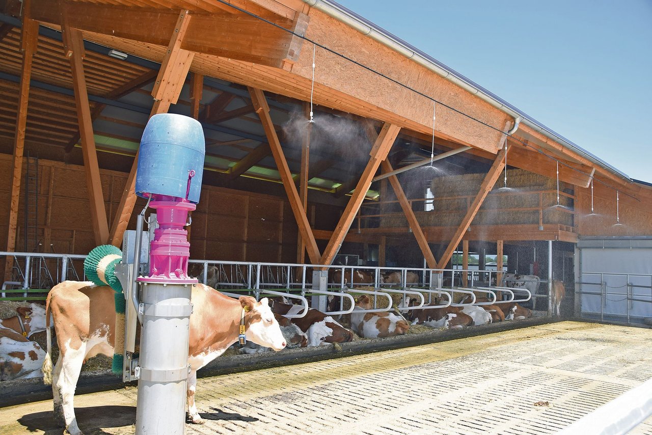 Auf dem Betriebsrundgang wird klar: Simon Zahnd ist mit Leib und Seele Bauer. «Bei mir muss halt immer etwas laufen», sagt er lachend. «Seit wir den neuen Laufstall im Sommer 2020 bezogen haben, wurden auch die Arbeitsabläufe viel einfacher», hält der Meisterlandwirt fest. 51 Liegeboxen bietet der neue Stall, gemolken wird mit einem 2×7-Swingover-Melkstand. Die grosszügigen und tiefgründigen Liegeboxen sind gefüllt mit einer Kalk-Strohmatratze und sorgen für einen hohen Kuhkomfort. «Weisst du, was ich am meisten bedauerte, als wir unsere Kühe vom Anbinde- und den Laufstall zügelte? Dass ich ihnen wegen der Sauberkeit den Schwanz zurückschneiden musste.» Anlässlich dem Tag der offenen Tür, am 21. und 22. August, möchte die Familie ihren neuen Stall gerne einer breiten Bevölkerung präsentieren.
