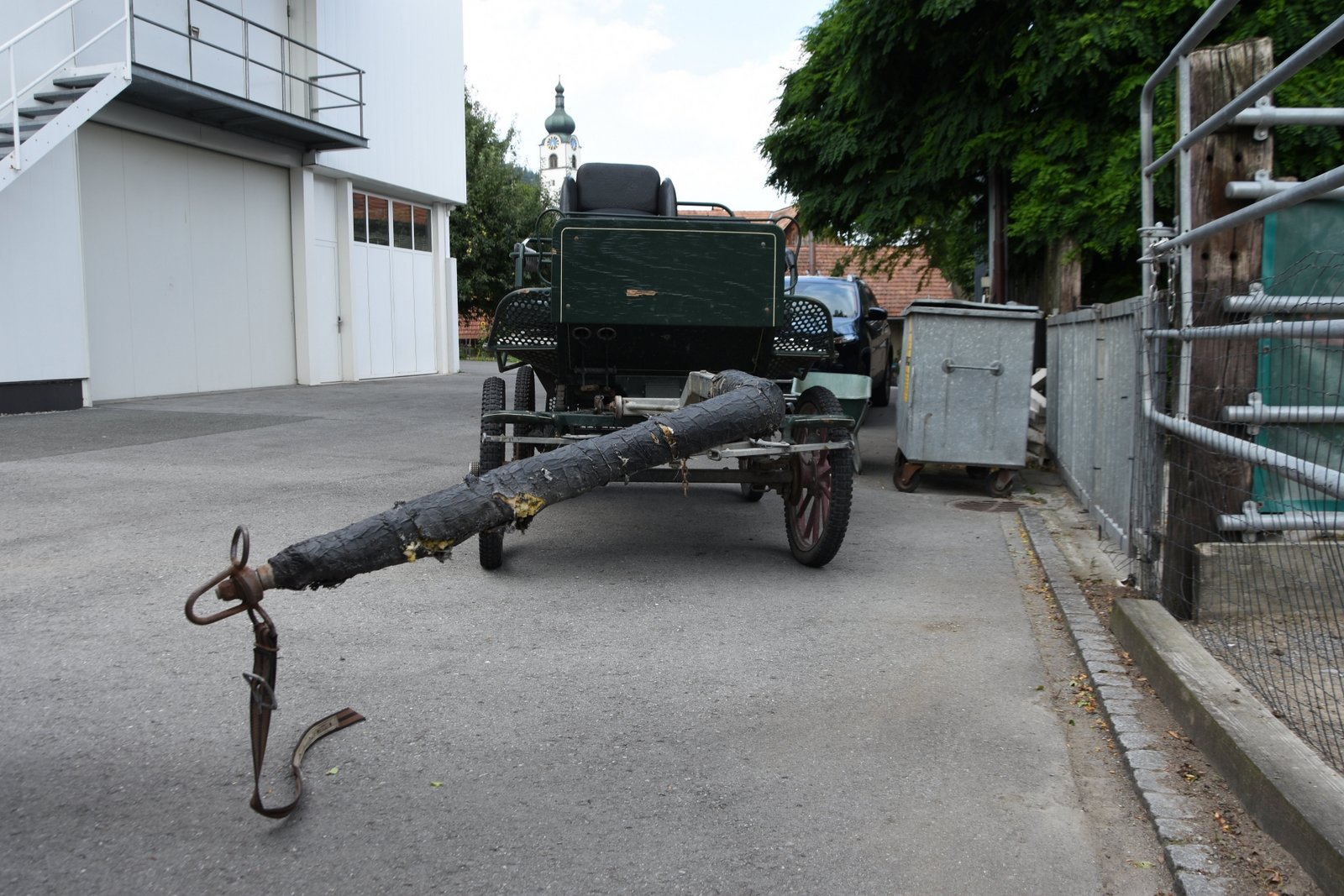 Das Pferdegespann war auf der Grünenstrasse in Richtung Schloss unterwegs, als eines der zwei Pferde den Halt verlor und stürzte. Beim Hilfeversuch des 63-jährigen Kutschers versuchte das zweite Pferd, um das am Boden liegende herumzulaufen. Dieses richtete sich plötzlich selbstständig auf und galoppierte mit dem zweiten Pferd ohne Kutscher talwärts in Richtung Kreuzung.