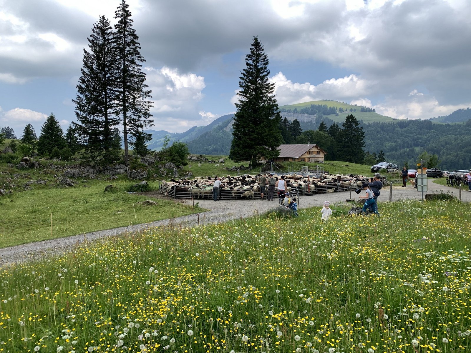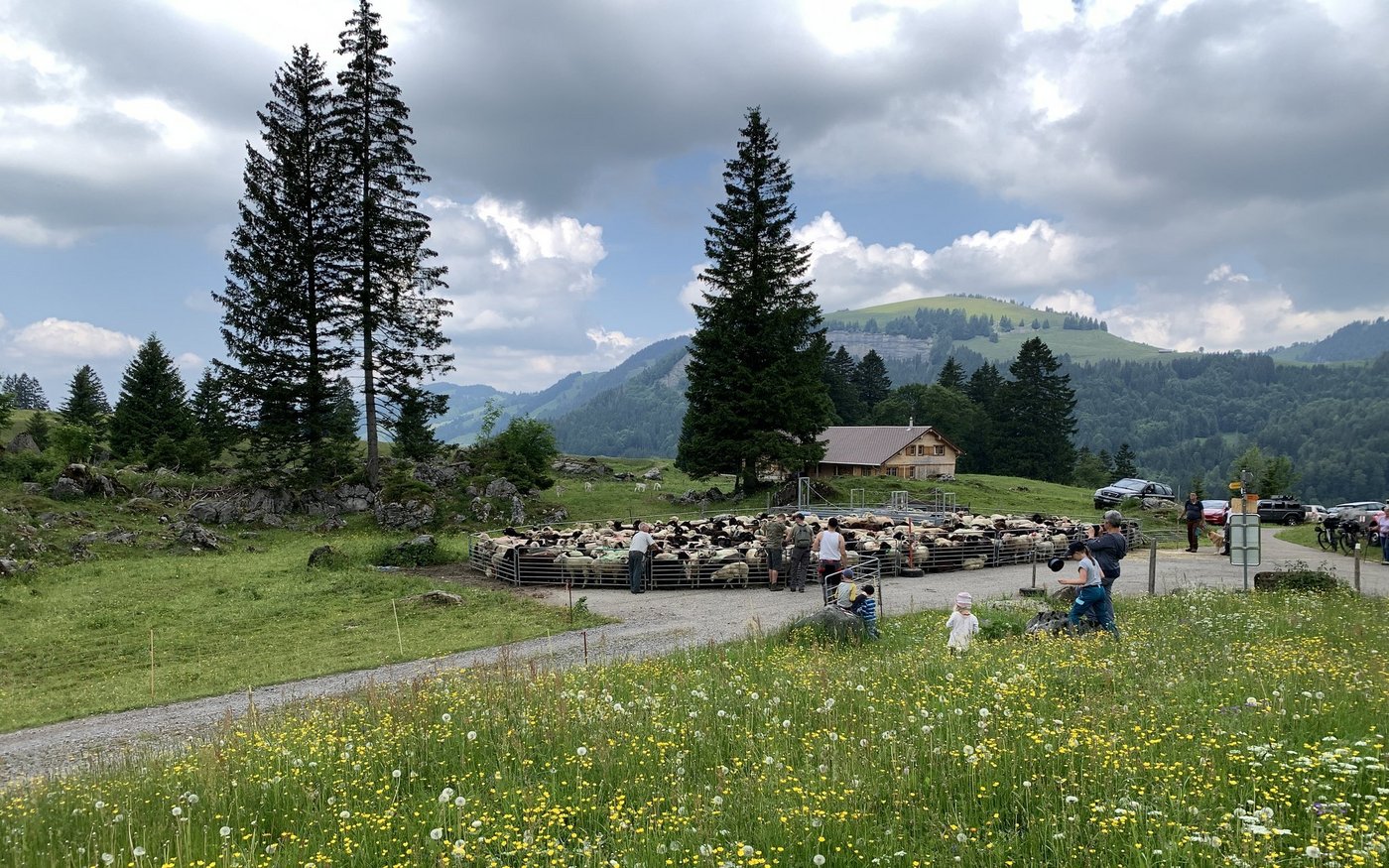 Kurz vor Mittag war es so weit, letzten Samstag, 10. Juni beim Bumoos auf rund 1200 Metern über Meer unterhalb der Schwägalp, nahe der Grenze von St. Gallen ins Appenzellerland. Rund 500 Schafe stehen laut blökend in einem engen Pferch beisammen. Daneben sprechen sich die Tierhalter und einige Helfer, auch mit Border-Collie Schäferhunden, zum weiteren Vorgehen ab. Das Natursträsschen hoch zur Alp Hofeld ist mit einem…