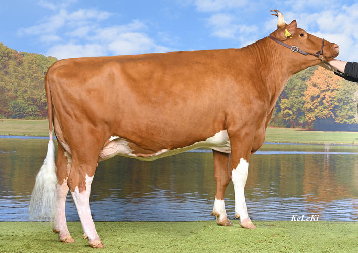 Beim Exterieur gibt es beim Swiss Fleckvieh einen neuen Spitzenreiter. Er heisst Renato Kilian aus der Zucht von Hans und Res Staub aus Eriswil BE. Kilian ist ein Sohn aus der bekannten Schaukuh Incas Haway (55 55 98) und EX-92 (Euter: EX-96). Von Kilian sind bisher 22 Töchter beurteilt was ihm einen ITP von 133 einbringt. Mit einem Euterzuchtwert von 134 lässt er hier keine Wünsche offen. Aber auch im Format (122) und im Fundament (114) ist er ein starker Vererber. Kilian wurde vor dem KB-Einsatz im Natursprung eingesetzt. Vor allem bei Daniel und Bernhard Hadorn, Schangnau BE, stehen mehrere, eindrückliche Erstlingskühe in ihrem Stall. Fast um ein Haar hätte es Kilian aber nicht in den KB-Einsatz geschafft. Nur auf Drängen des Züchters und der Mitbesitzer kam dieser Renato-Sohn doch noch zu Swissgenetics. Zum Glück: Denn jetzt können alle Betriebe von seiner Genetik profitieren.