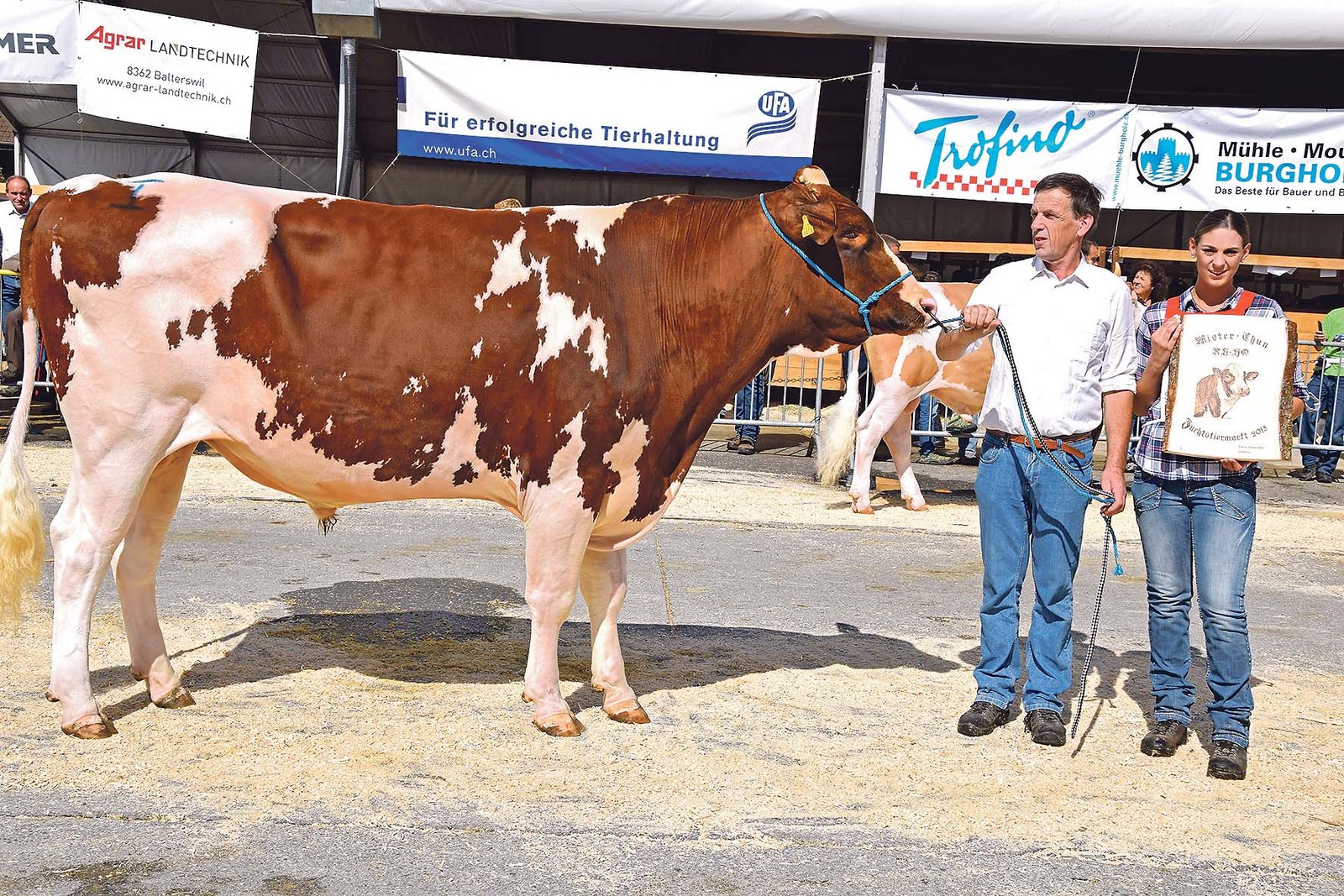 Eindrücklich präsentierten sich die Sieger der älteren Kategorien. Mister Thun bei den Red Holstein wurde der sehr korrekte Acme Ginas-Boy von Daniel und Andrea Schwarz aus Uetendorf BE. Ginas-Boy ist nicht nur schön, sondern stammt mit Rustler Gina auch aus einer ehemaligen Europameister-Teilnehmerin ab.