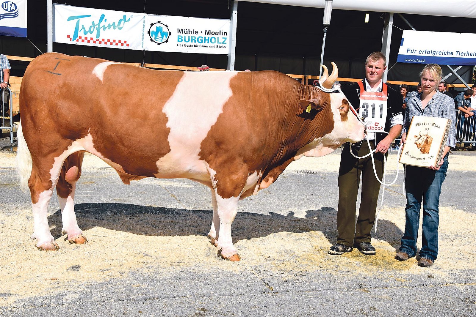 Beim Swiss Fleckvieh stand Rolf Dummermuth aus Fahrni b. Thun BE mit seinem Odyssey Toni zuoberst auf dem Podest (Züchter Hanspeter Fuss aus Teuffenthal BE). Und Mister-Stierenkalb bei den Red Holstein/Holstein wurde Schüpachs Galba Toledo von Jakob Schenk, Eggiwil BE (Züchter Walter und Michael Schüpbach, Signau BE).