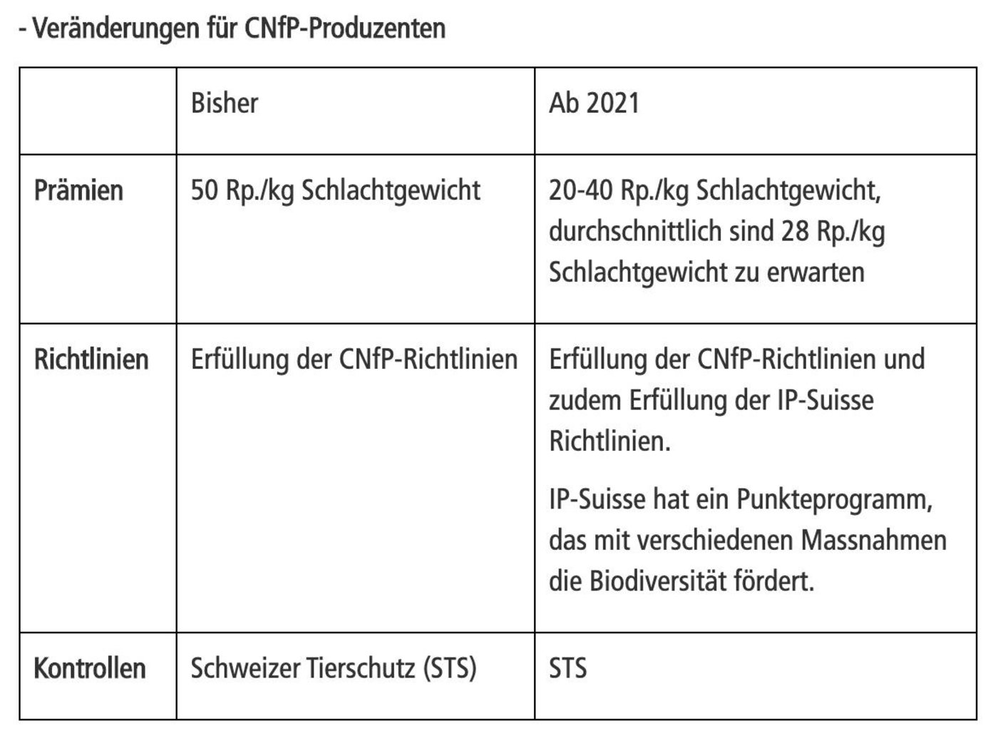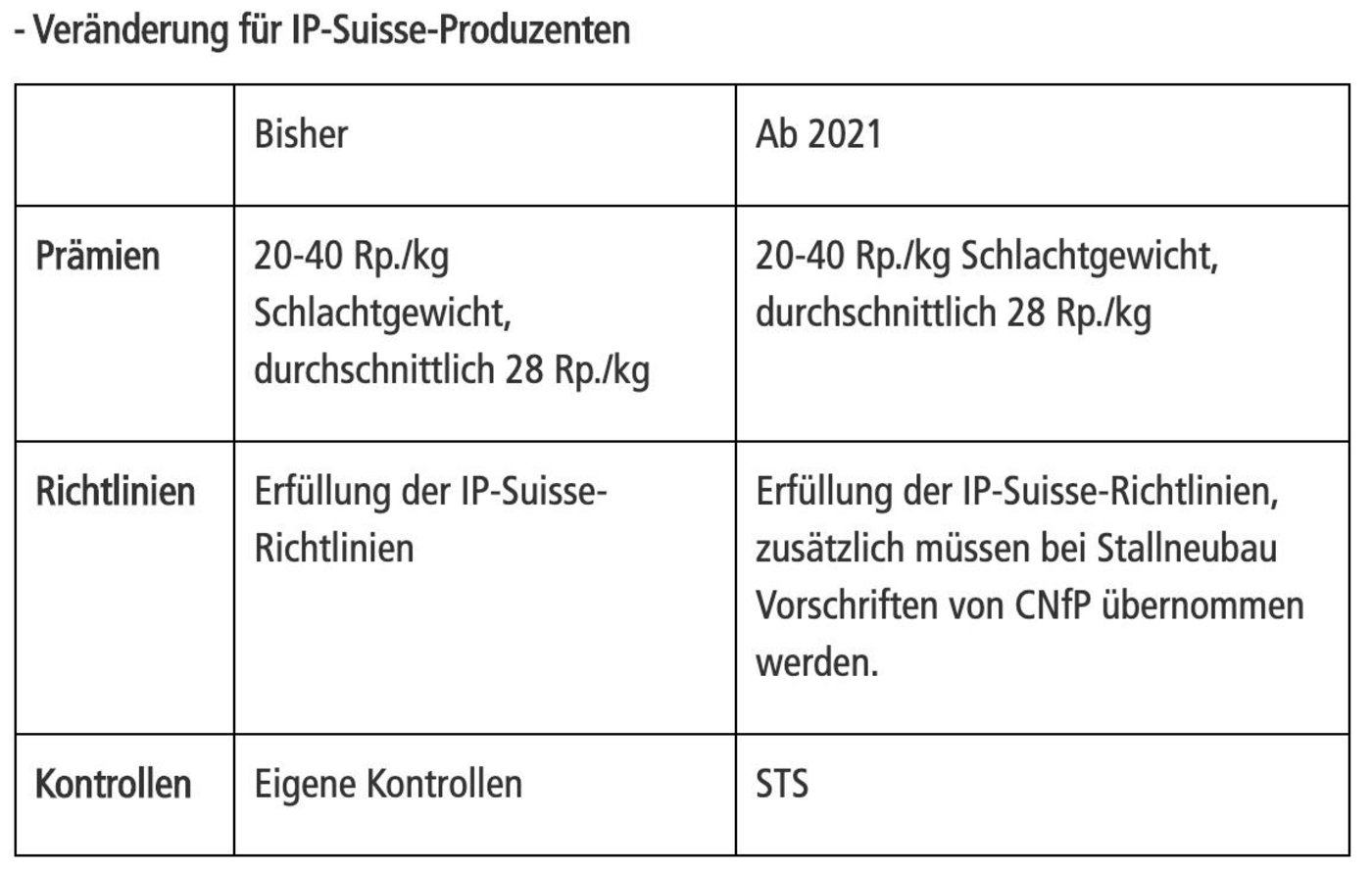 Ende Februar kam dann ein weiterer Schock für die CNfP-Produzenten, als Coop bekanntgab, dass sie ab 2021 die Richtlinien von CNfP an IP-Suisse abgeben wird. Das bedeutet für die CNfP-Produzenten, dass sie weniger Prämien pro Schwein erhalten und gleichzeitig neu gesamtbetriebliche Anforderungen im Bereich Biodiversität erfüllen müssen (siehe Kasten). Aus dem IP-Suisse-Punktesystem können sie für ihren Betrieb passende Massnahmen auswählen wie beispielsweise das Anlegen von Buntbrachen oder der Verzicht auf Mähbalken.