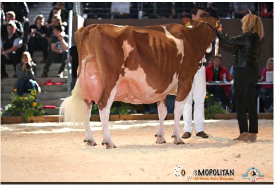Nach ihrem Europameistertitel von 2013 gelang Suard Red Jordan Irene der Gebrüder Schrago aus Middes FR das einzigartige Kunststück und gewann erneut den Europameistertitel der Red Holsteinschau. Die am 3.12. 2004 geborene Irene leistete bisher 92 000 kg Milch und ist mit EX-96 beschrieben. Reserve Champion wurde die aktuelle Expo-Bulle-Siegerin Bobi Talent Lotanie von Pierre Oberson und Nicolas Savary aus Maules FR. Auch im Länderwettbewerb liess die Schweiz nichts anbrennen und holten auch diesen Titel.