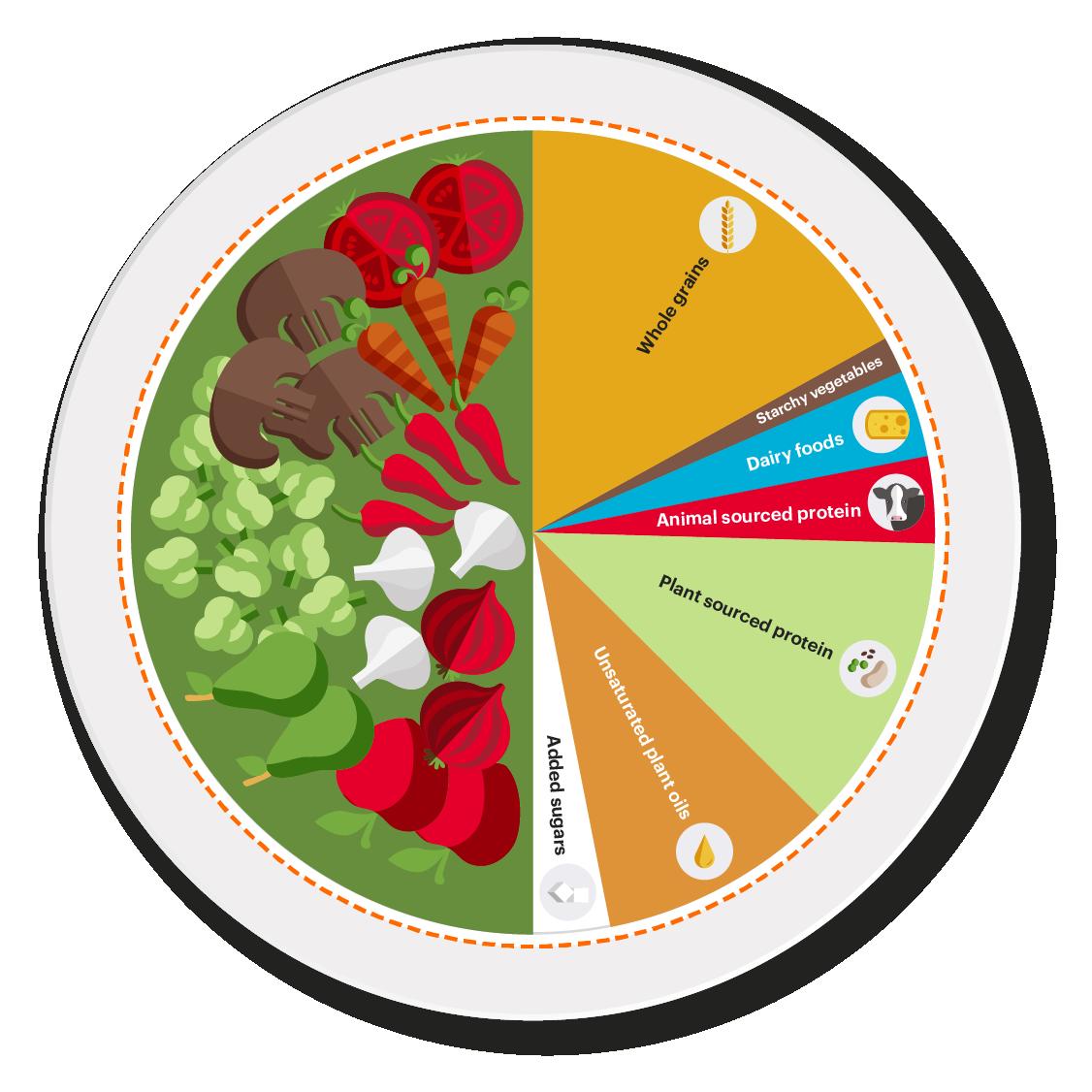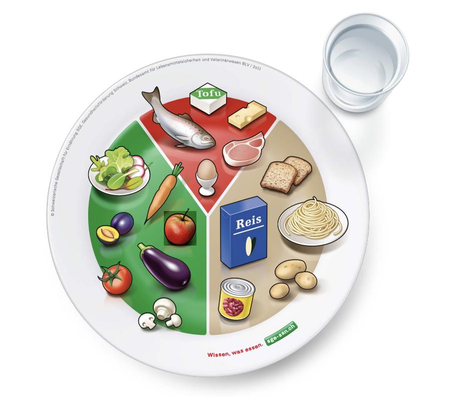 | [IMG 2] | Optimaler Teller gemäss der Schweizerischen Gesellschaft für Ernährung SGE, abgeleitet aus der Lebensmittelpyramide |