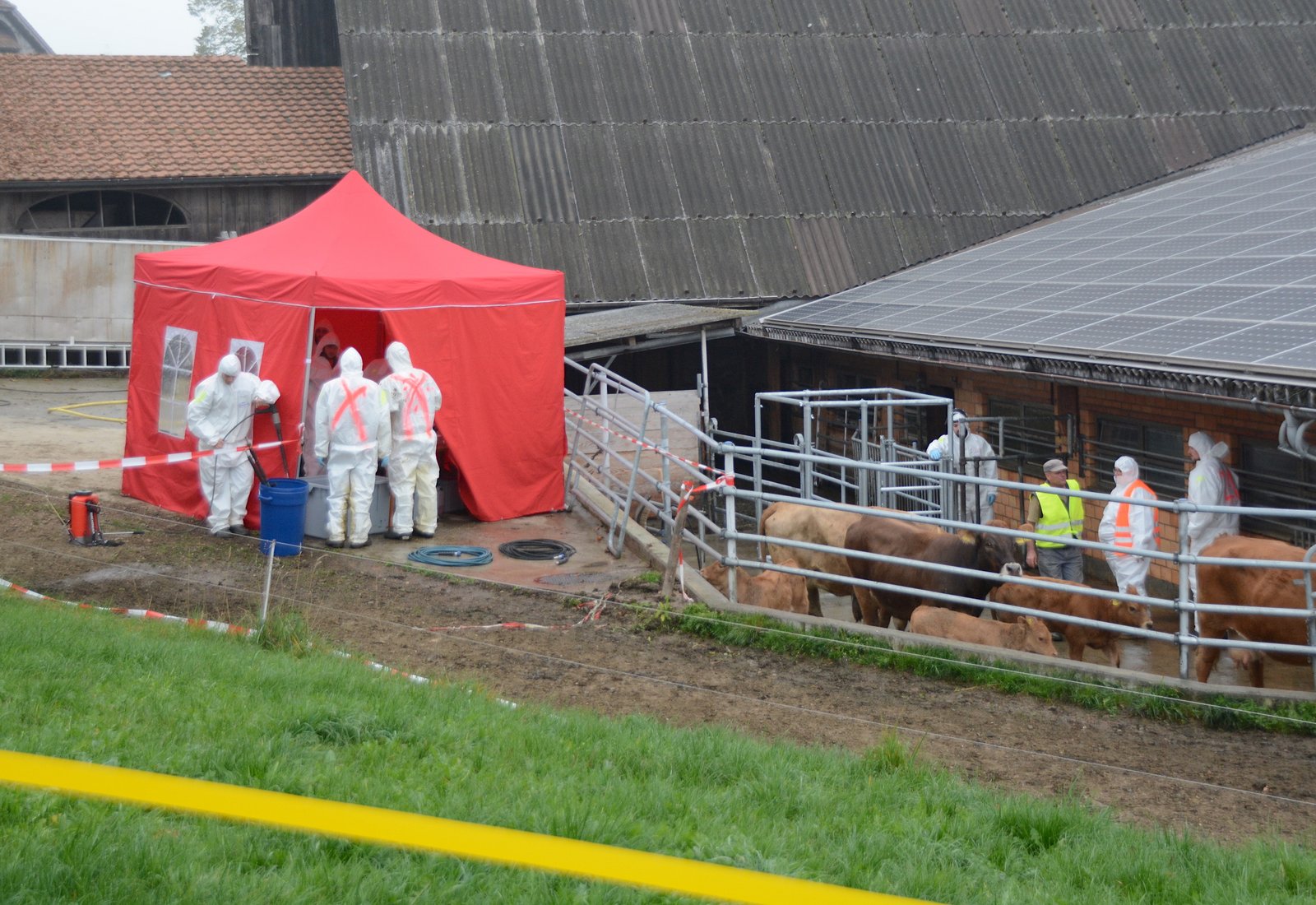 Für Kantonstierarzt Otto Ineichen ist das Übungsszenario sehr realistisch, denn die Maul- und Klauenseuche könne in der Schweiz jederzeit ausbrechen. Die Schweiz gilt derzeit zwar als frei von Maul- und Klauenseuche. Gerade im September wurde in Israel aber ein Fall fesgestellt. Und die Seuche sei auch in Afrika und im Nahen Osten verbreitet. In dramatischer Erinnerung bleiben die Bilder vom Ausbruch in England im Jahr 2007. Letzte Woche wurde an einer grossangelegten Tierseuchenübung aufgezeigt, wie bei einem Ausbruch vorzugehen ist. Im Einsatz standen über 100 Personen, von der Feuerwehr bis zum Zivilschutz. Geübt wurde auch die Sanierung auf einem Bauernhof, wo im Ernstfall Hunderte von Tieren hätten getötet werden müssen.
