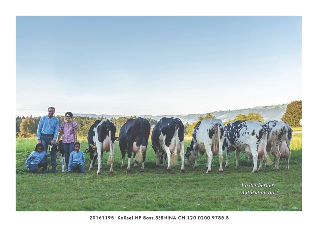 Zurzeit stehen auf dem Betireb der Familie Knüsel drei Kühe, welche bereits über 130`000 kg Milch in ihrem Leben erbracht haben, weitere drei haben bereits die 94`000 kg Grenze überschritten. Doch an einer dieser Kühe, ist noch etwas Weiteres als ihre Lebensleistung ganz besonders. Die Kuh Bernina hat nämlich nicht nur eine Lebensleistung von aktuell 140`644 kg Milch, sondern auch sechs aufeinanderfolgende Nachkommen welche in Knüsel`s Stall stehen. Neben ihrer unglaublich hohen Lebensleistung, welche zurzeit pro Lebenstag 28 kg Milch beträgt, gewann Bernina als Erstmelkkuh an der Zuger Open Expo 2006 den Schöneutertitel und wurde 2007 zum 30. Jubiläum des Holsteinzuchtvereins Zug zum Champion erkoren, während dem ihre Tochter Brishil an derselben Schau den Schöneutertitel gewann. Brishil konnte ebenfalls zweimal an der Zuger Open Expo einen Schöneutertitel gewinnen. Sie hat von ihrer Mutter auch das Talent geerbt viel Milch zu produzieren, so hat sie bis heute bereits 111`422 kg Milch mit einer stets sehr niedrigen Zellzahl erbracht.
