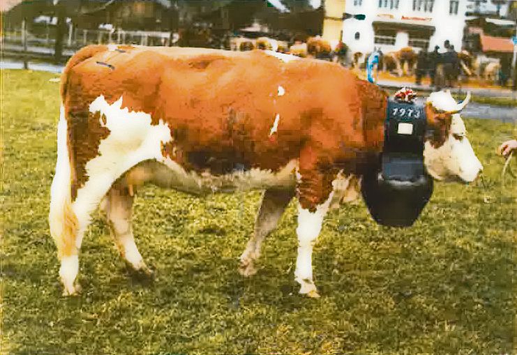 Moritz Omega, die an der Viehschau 1978 mit 99 Punkten beurteilt wurde, stammt aus dem Betrieb von Grünigen. (Bild von Grünigen)