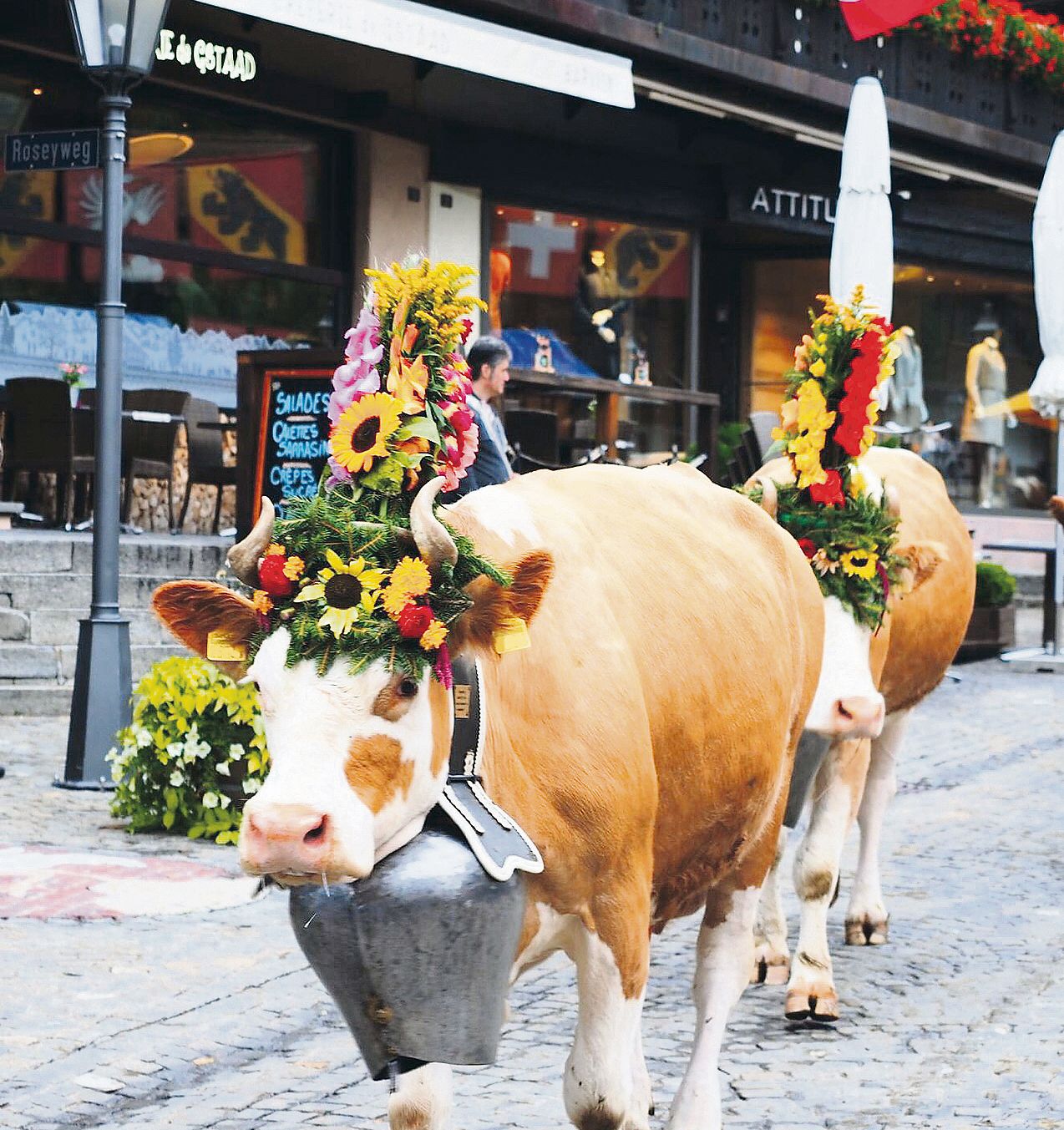 An der «Gstaad Züglete», Anfang September in Gstaad, sind auch von Grünigens Kühe mit dabei. (Bild von Grünigen)