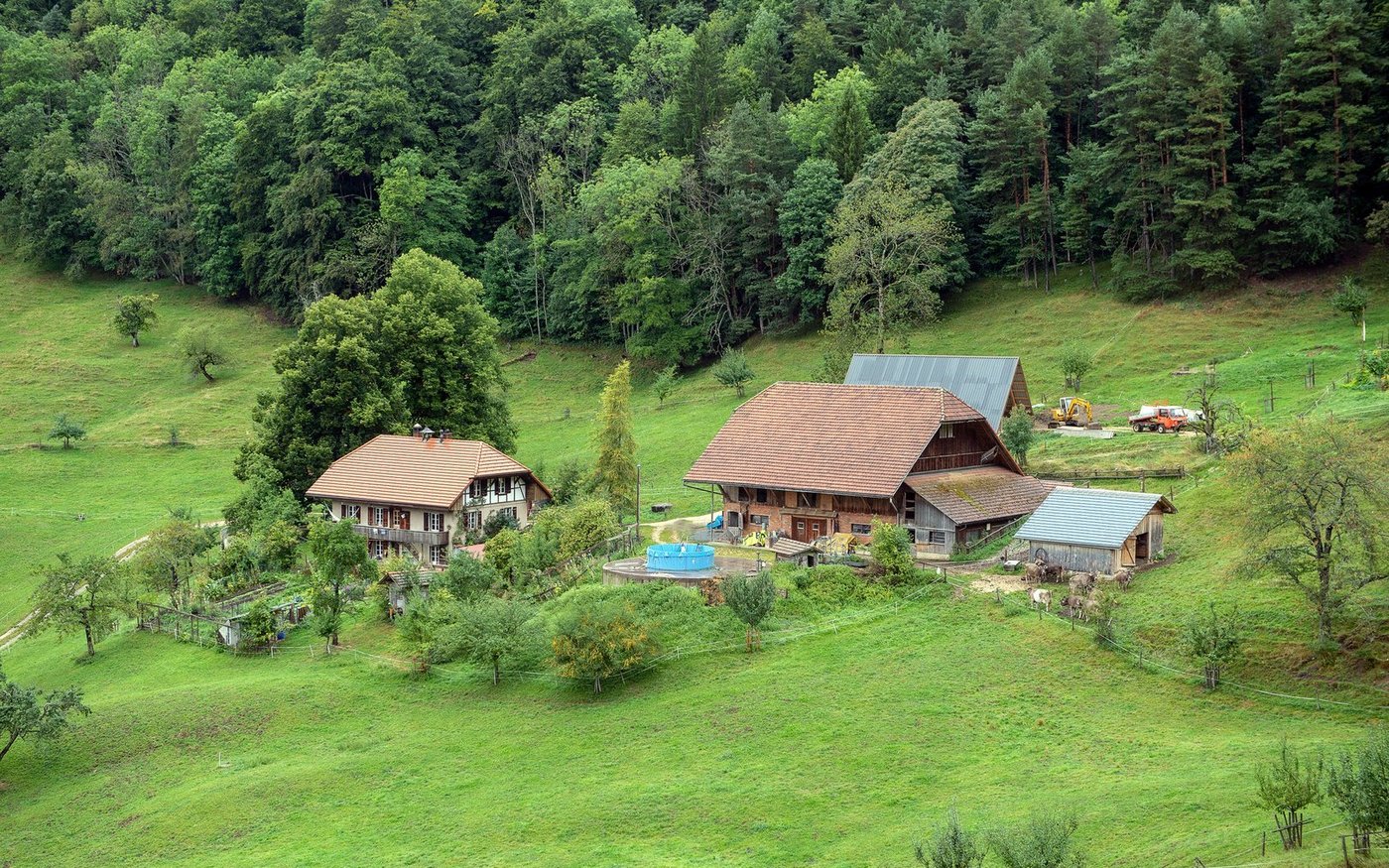 Der Betrieb «Valengiron» in Perrefitte im Berner Jura, den er von seinen Eltern übernommen hat, umfasst rund 17 Hektaren und liegt in der Bergzone II. Der 41-Jährige konnte ab 2013 den Kuhstall übernehmen, 2017 dann das Inventar erwerben und Anfang Januar 2023 wurde der Betrieb auf ihn überschrieben. Er ist grösstenteils auf dem Betrieb aufgewachsen, seine Eltern haben diesen gekauft, als er elf Jahre alt war. Das ist mitunter auch ein Punkt, warum er sich auf seinem Betrieb sehr gut zurechtfindet. Denn damals konnte er, im Vergleich zu heute, noch relativ gut sehen. Aufgewachsen ist Donat Capaul mit einem Bruder, einer Schwester und seinen Eltern, die, mittlerweile in einem Stöckli, nach wie vor auf dem Betrieb wohnen.