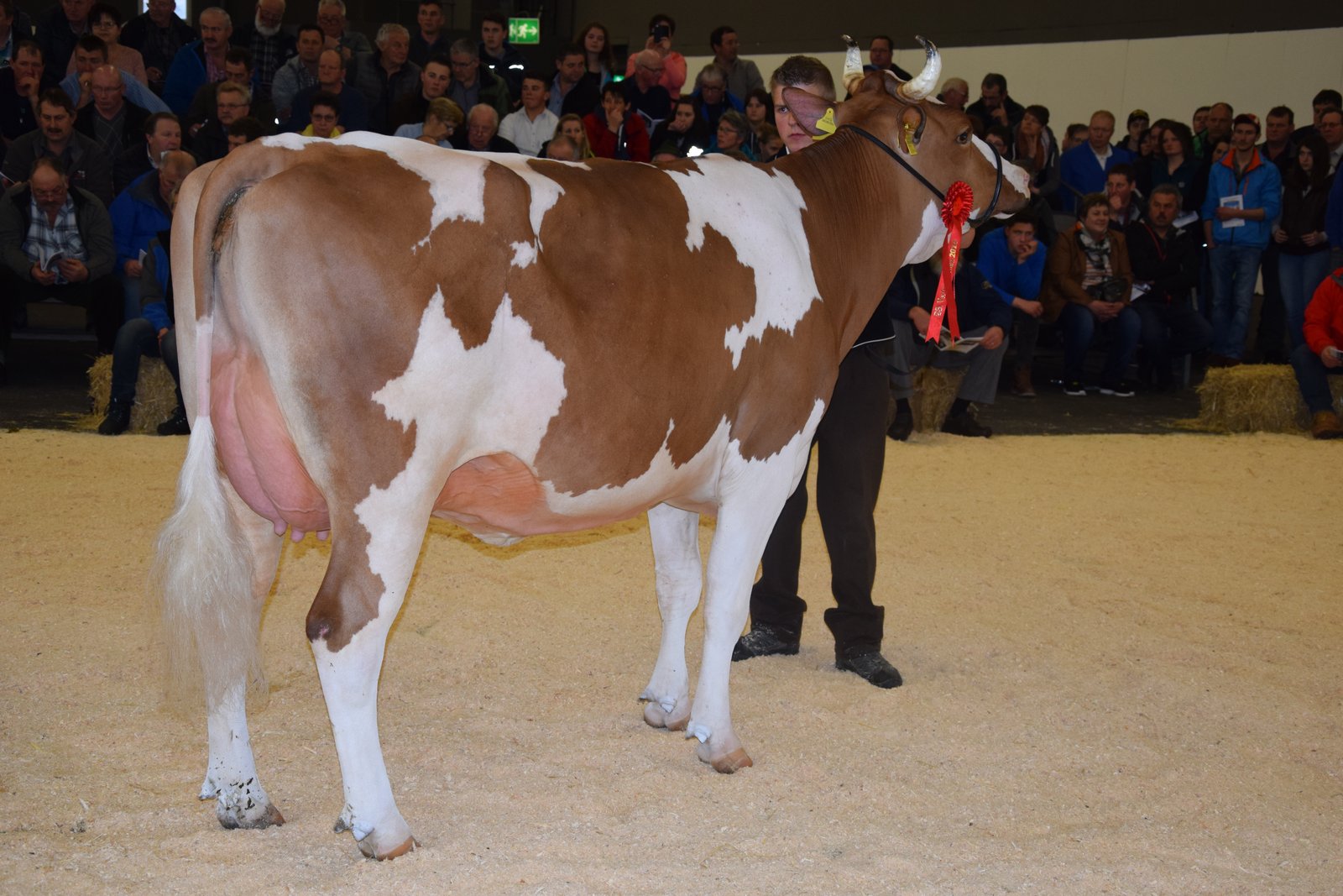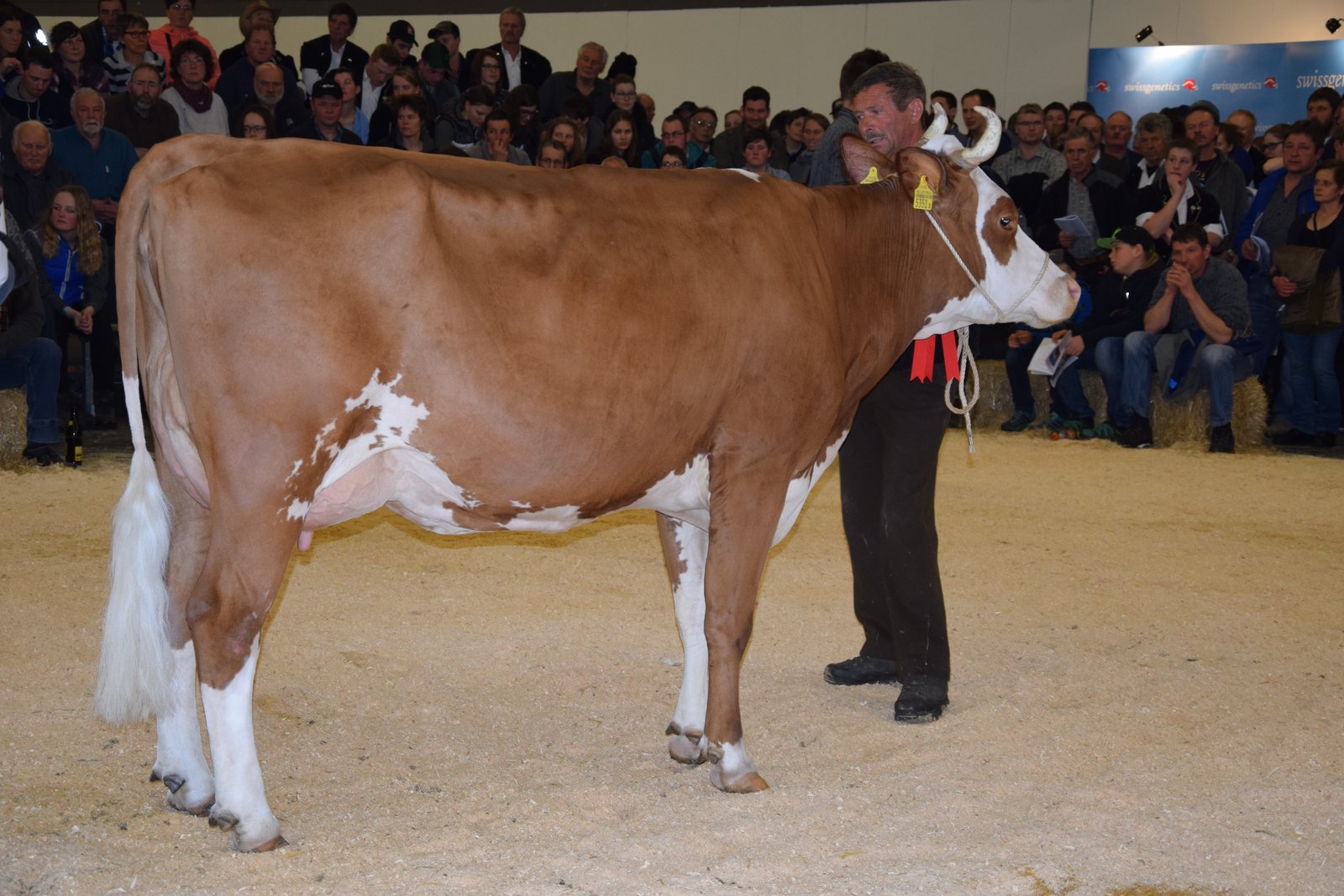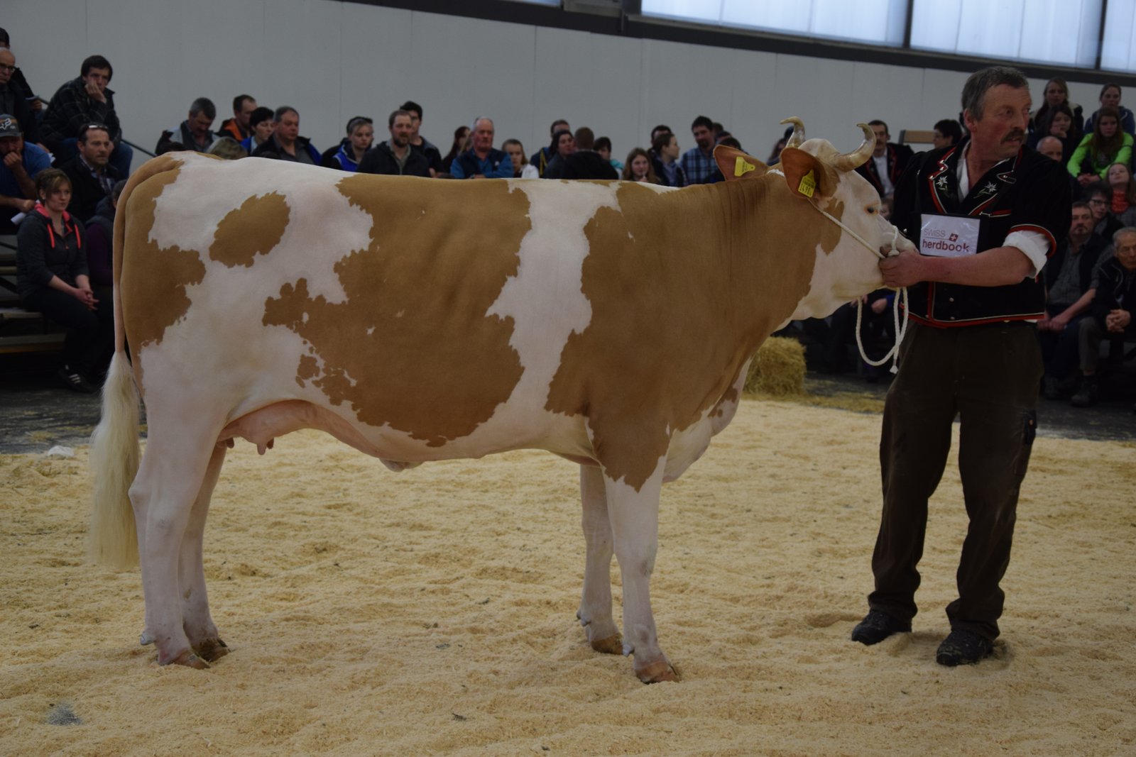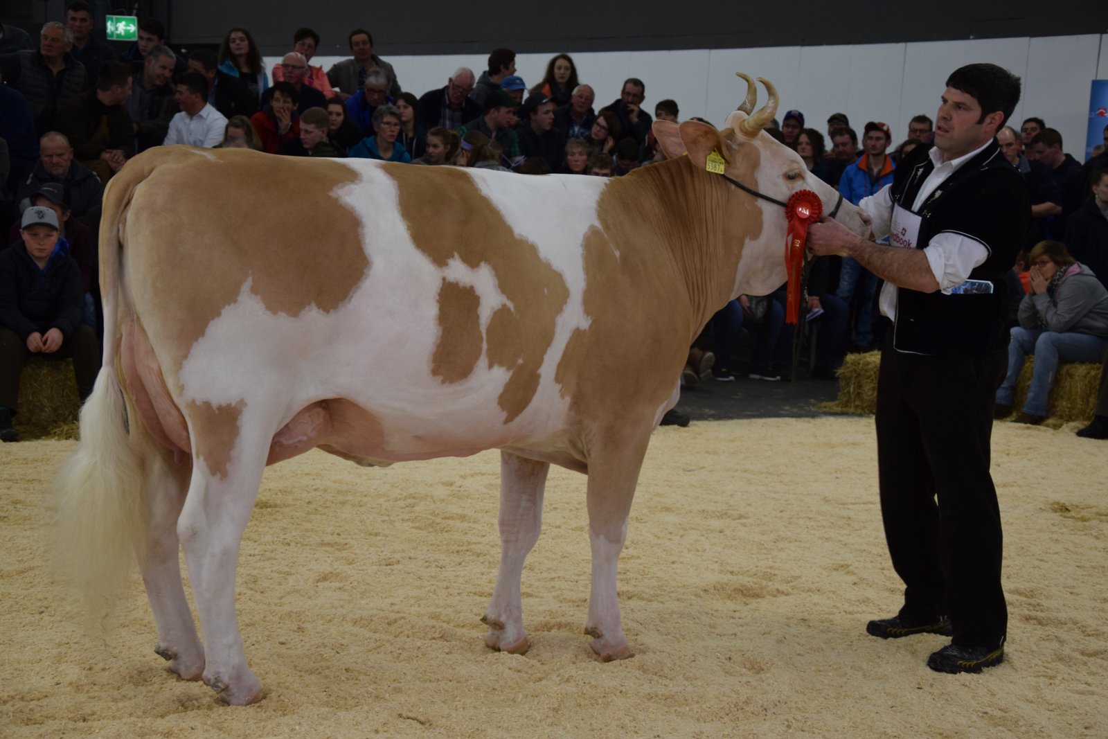 Bei der Swiss Fleckviehrasse hatte der Reinzüchter Peter Brügger das Sagen. Grosse Siegerkuh wurde hier PerrenSenggi Pierolet Suleika von Urs und Andrea Perren aus St. Stephan. Suleika zeigte in Thun extrem viel Schliff und Feinheit, dazu hatte sie ein Euter, das mit ihrer Breite und Qualtiät beeindruckte. Eine weitere Pierolet-Tochter, nämlich Falk, aus dem Stall von Ueli Hefti aus Turbach gewann den Schöneutertitel bei den älteren Kühen. Junior-Siegerin wurde die vielversprechende Odyssey Felicia von Hans und Markus Fankhauser, Süderen. Hier hatte das schönste Euter Anjou Anita von Ferdinand Bergmann, Abländschen.