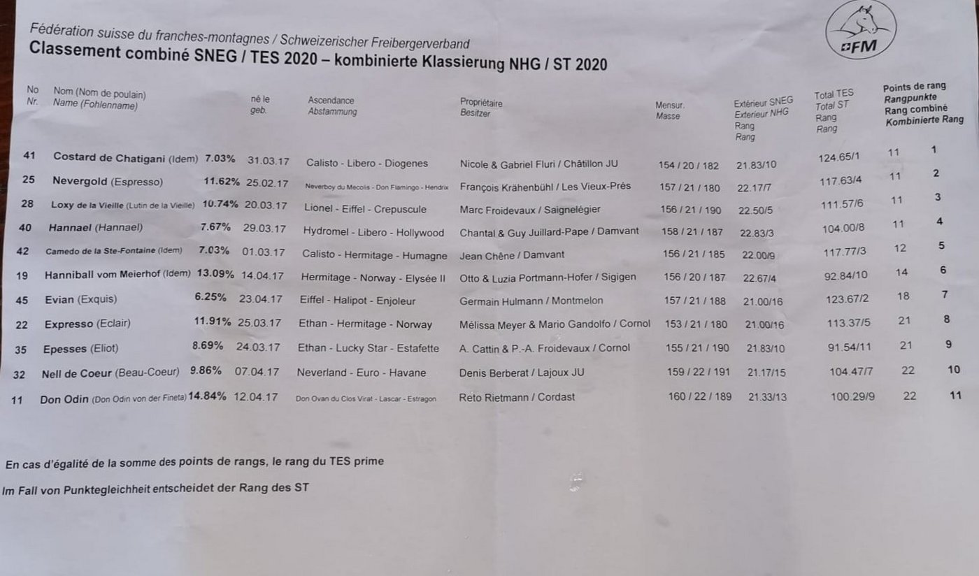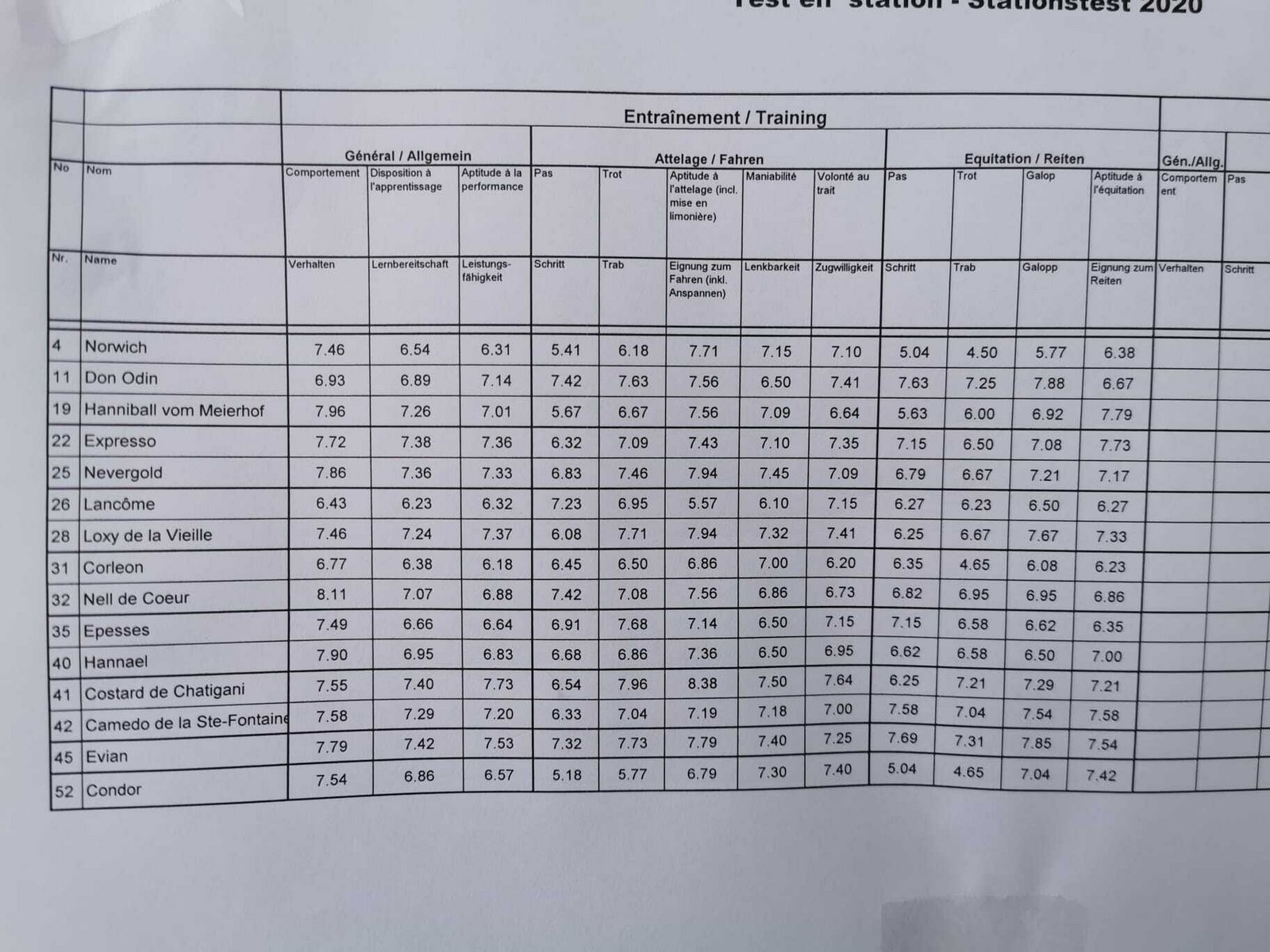 Hier die Schlussrangliste des Stationstests 2020 für die Freibergerhengste: