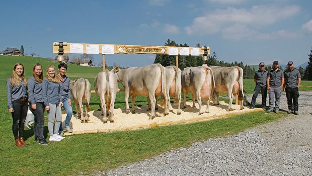 Mit 80 Punkten wurde die Zuchtfamilie der Stammkuh Arrow Donau beurteilt. Die 98-punktige Donau präsentierte an ihrer zweiten Auffuhr sechs Nachkommen, davon vier gekalbte Töchter. Nicht nur leistungsmässig, sondern auch gehaltsmässig, konnte Donau die Vorzüge an ihre Nachzucht weitergeben. Ebenfalls 80 Punkte erhielt die Allegro-Tochter Canaria (54 54 96) mit ihren Nachkommen. Canaria, welche Leistungen von über 11 000 kg Milch aufweisen kann, zeigte Töchter der Stiere Mr Savage, Vitus, Rico und zwei Töchter von Armani. Auch eine A-Klasse (76 Punkte), erreichte die Familie der Kuh Absolute Butterfley (55 55 98). Eine Red-Boy-, eine Jotan-, eine Amnesty- eine Jacot-Tochter, sowie ein Escobar-Sohn gehörte zu ihrer Gruppe. Knapp die Klasse A mit 72 Punkten hat die Zuchtfamilie der Incas-Tochter Cindy verfehlt. «Wir haben schon gedacht, dass es nicht für alle in die Klasse A reichen wird», sagt Christine Streit. Sie hätten es eher bei einer anderen Kuhfamilien vermutet und nicht bei Cindy. 67 Punkte gab es schlussendlich für die Zuchtfamilie von Lista Gzim Kerstin (55 55 98) von Urs und Franziska Salzmann.