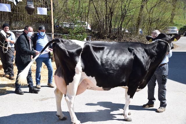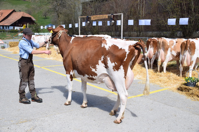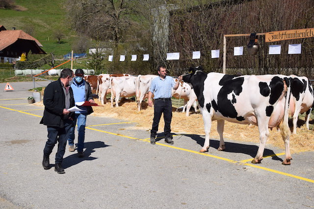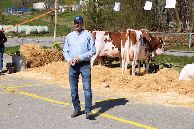 So hatten die beiden Experten Heinz Baur und Daniel Zürcher an diesem Nachmittag viel zu tun, da sich gleich fünf Zuchtfamilien auf einen Schlag zu beurteilen hatten. Neben den Stammkühen beurteilten sie auch deren Töchter akribisch auf ihr Exterieur. Bewertet werden zudem auch die Milchleistung (ZW Milch), der Fett- und Eiweissgehalt, der IPL, die Zellzahl und das Exterieur der einzelnen Tiere und der Gruppe. Das Exterieur zählt dabei zu 50 %. Die Zuchtfamilien werden danach in Qualitätsklassen eingeteilt: Klasse A 75 und mehr Punkte; Klasse B 65 bis 74 Punkte und Klasse C unter 65 Punkten.