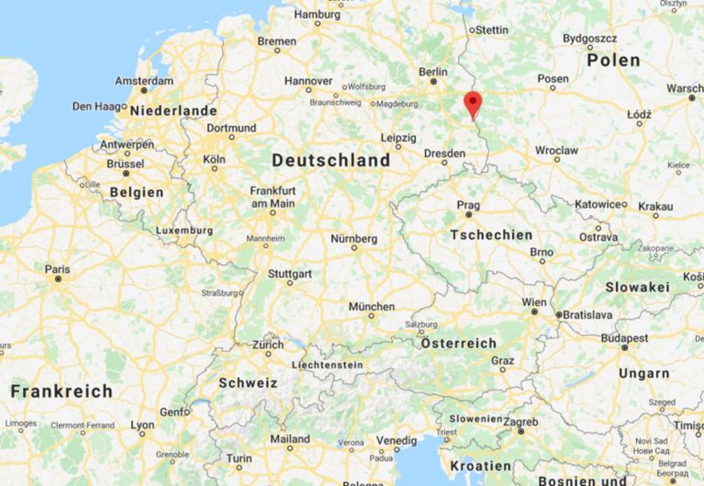 Noch ist die Vogelgrippe weit von der Schweiz entfernt (rote Markierung). (Bild Screenshot Google Maps)