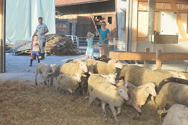 Es ist kurz vor Feierabend. Die Sonne geht langsam unter. Die sechsköpfige Familie Ziegler hat einen grossen Moment vor sich, auf den sie lange gewartet hat. Die Schafe scheinen zu merken, dass es sich um sie handelt. Die ersten Tiere halten bereits neugierig am Gatter Ausschau. Mit Besen ausgerüstet stehen die Jungmannschaft und Ehefrau Gabriela Ziegler am Wegrand bereit, um den Tieren die richtige Richtung zu weisen, zum neuen Stall, der direkt nebenan liegt. Der grosse, lichtdurchflutete und freistehende Holzbau bietet für knapp 600 Lämmer Platz.