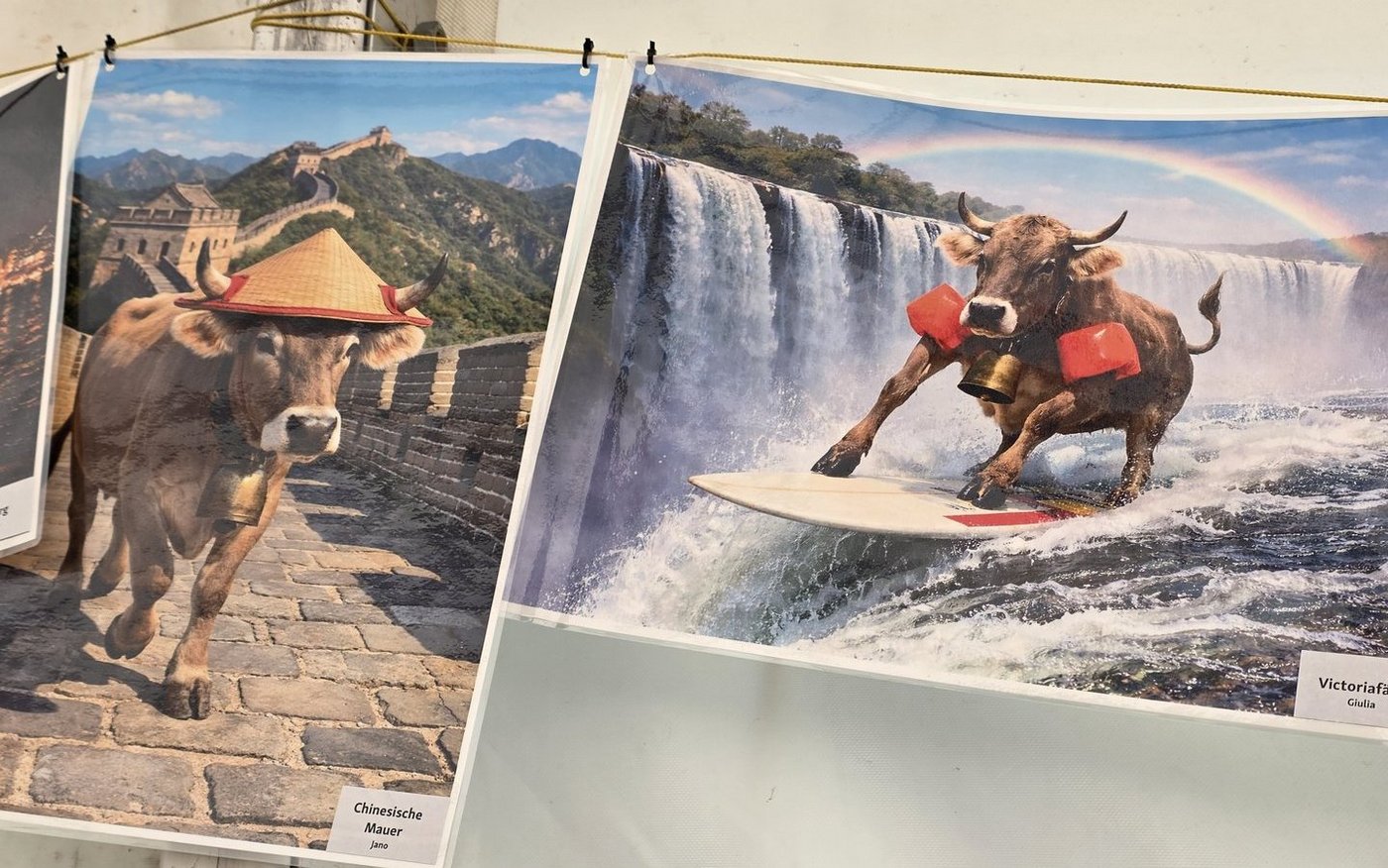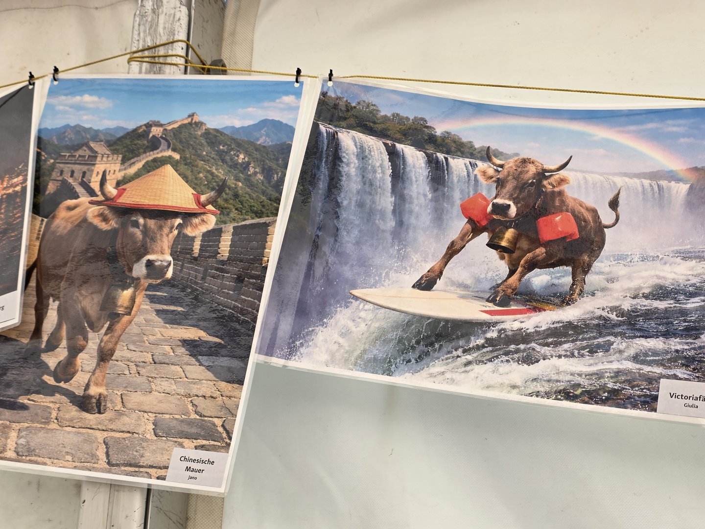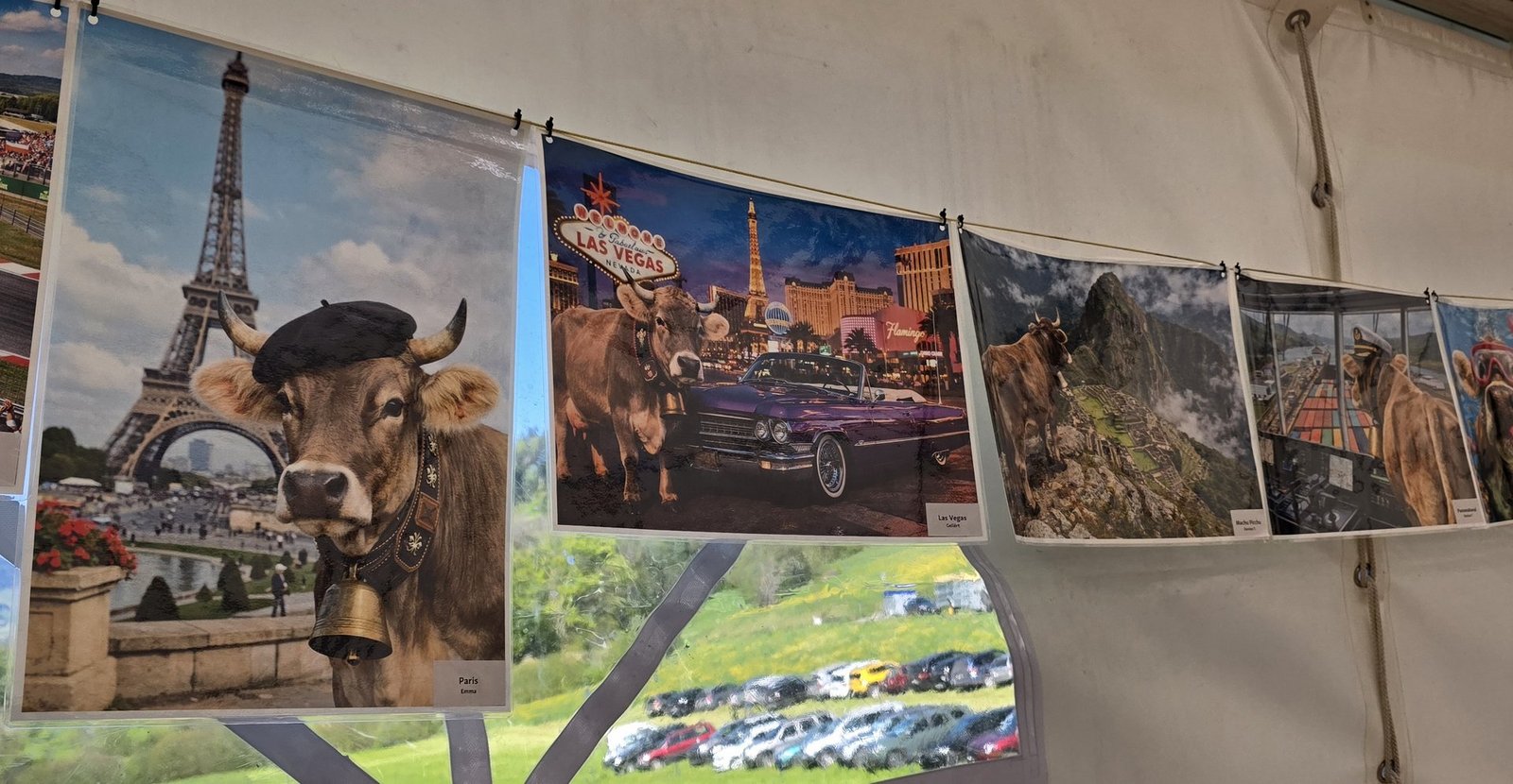 Und nun kommen wir im Heute an. 125 Jahre Viehzucht Oberhelfenschwil. Am 25. April 2026 standen 389 Tiere auf dem Festplatz. Acht Jungzüchter und sieben Kinder am Kälberwettbewerb waren dabei, 42 Wärter sorgten für einen reibungslosen Ablauf, die Primarschule Oberhelfenschwil bereicherte die Schau mit verschiedenen Darbietungen. Christian Manser moderierte gekonnt und mit viel Witz durch den Tag und sorgte dafür, dass auch das nichtbäuerliche Publikum das Geschehen im Ring mit Freude verfolgen konnte. In der Festwirtschaft hingen Bilder, die Kinder mit Hilfe von Künstlicher Intelligenz gestaltet hatten: Braune Kühe in Paris vor dem Eiffelturm, beim Tauchgang im Ozean, als Zuschauerinnen am Nürburgring, an der Chinesischen Mauer oder auf dem Surfbrett. So weit reicht die Vielseitigkeit der Braunen dann doch nicht. Aber der Bogen, den diese Bilder spannen, ist trotzdem treffend: Von den handgeschriebenen Zuchtbüchern des Jahres 1901 bis zur genomischen Selektion und den KI-generierten Bildern von heute hat sich die Welt mehrfach neu erfunden. Die Braune Kuh des Toggenburgs ist geblieben, was sie war: ein leistungsstarkes, langlebiges Tier, das gepflegte Höfe inmitten einer grasgrünen Landschaft prägt, ein besonderes Stück Schweiz.