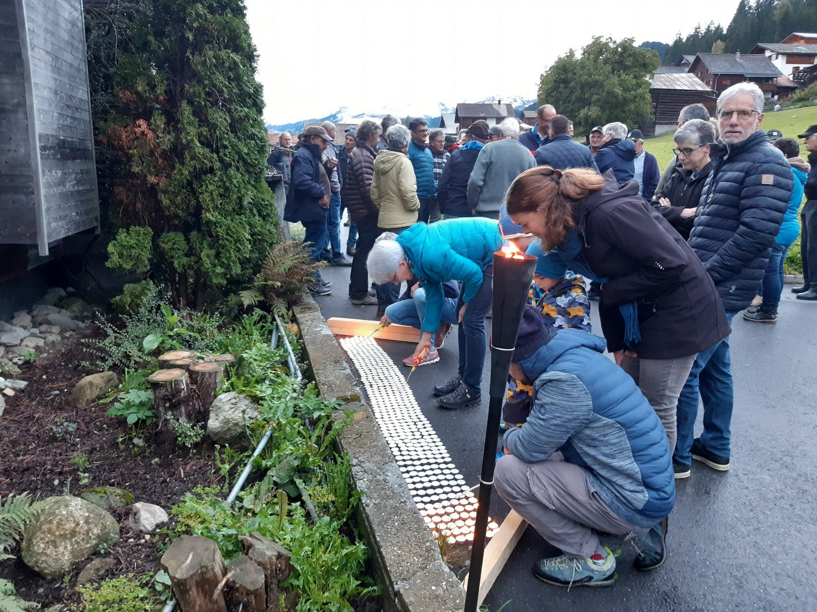 Neben dem Hauptfeuer wurden vor der Besenbeiz der Familie Cahenzli auch 433 Kerzen entzündet, um an die bereits 433 gerissenen Nutztiere im noch laufenden Jahr 2022 zu gedenken. Die Anzahl der Risse hat sich innerhalb eines Jahres verdoppelt und dies trotz unverhältnismässig grossen Herdenschutzaufwänden. Auch der Bündner Regierungsrat Marcus Caduff, Vorsteher des Departements für Volkswirtschaft und Soziales, war anwesend.