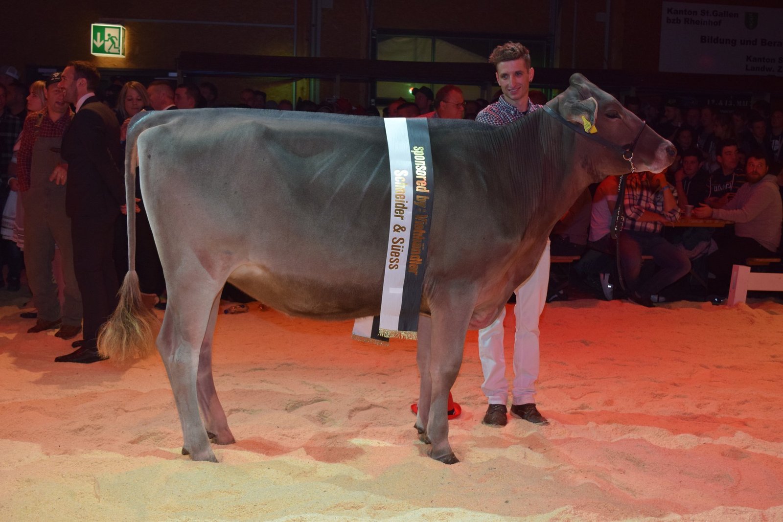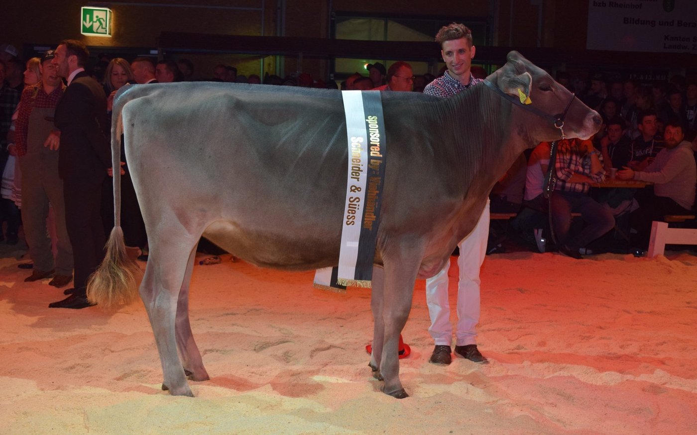 Besonders beeindruckt zeigte er sich von den Tieren in Abteilung 7. «Eine absolute Hammer-Abteilung. Die stärkste Abteilung des bisherigen Abends», so Gubelmann. Um den Abteilungssieg zeichnete sich ein Kopf-an-Kopf-Rennen ab, das Tischhausers Sorayo Jule von Hansueli Tischhauser, Krummenau SG, für sich entscheiden konnte. Ihr Schulterschluss und die Vorderrippen seien eine Spur ausgeprägter gewesen als jene der Zweitplatzierten Immenberg BS Jeff Camberra von Immenberg Brown Swiss aus Schönholzerswilen TG.