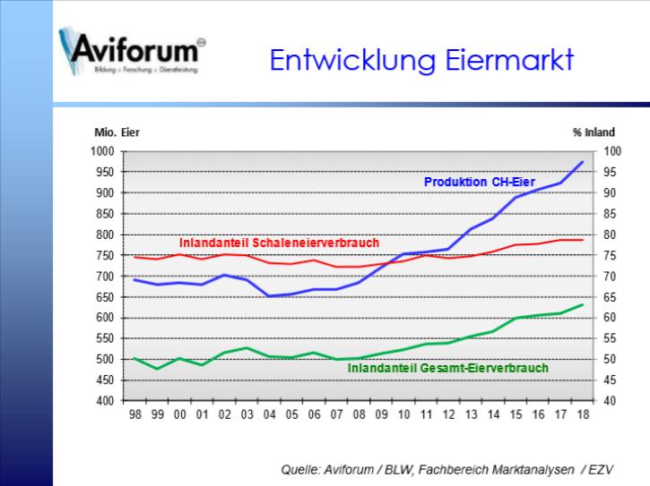 «Aber Achtung!», warnte Würgler «das Wachstum sollte nicht zu schnell gehen». Denn die grösste Herausforderung im Eiermarkt sei die Saisonalität. Hierbei sind nicht die Hühner die Verursacher, denn diese legen jeden Tag gleichviele Eier. Nein hier verhalten sich die Konsumenten saisonal. An Ostern und vor Weihnachten essen Schweizerinnen und Schweizer mehr Eier als im restlichen Jahr. Nun gilt es also im Eiermarkt keine Überschusswaren zu produzieren. Zudem versucht Gallo Suisse, ganzjährig den Konsum von Schweizer Eiern zu fördern.